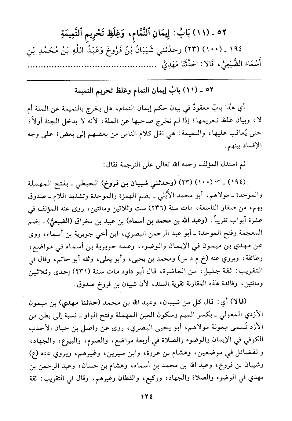 ١٩٤ - (١٠٠) (٢٣) وحَدَّثَنِي شَيبَانُ بْنُ فَرُّوخَ وَعَبْدُ اللهِ بْنُ مُحَمَّدِ بْنِ أَسْمَاءَ الضُّبَعِي، قَالا: حَدَّثَنَا مَهْدِيٌّ