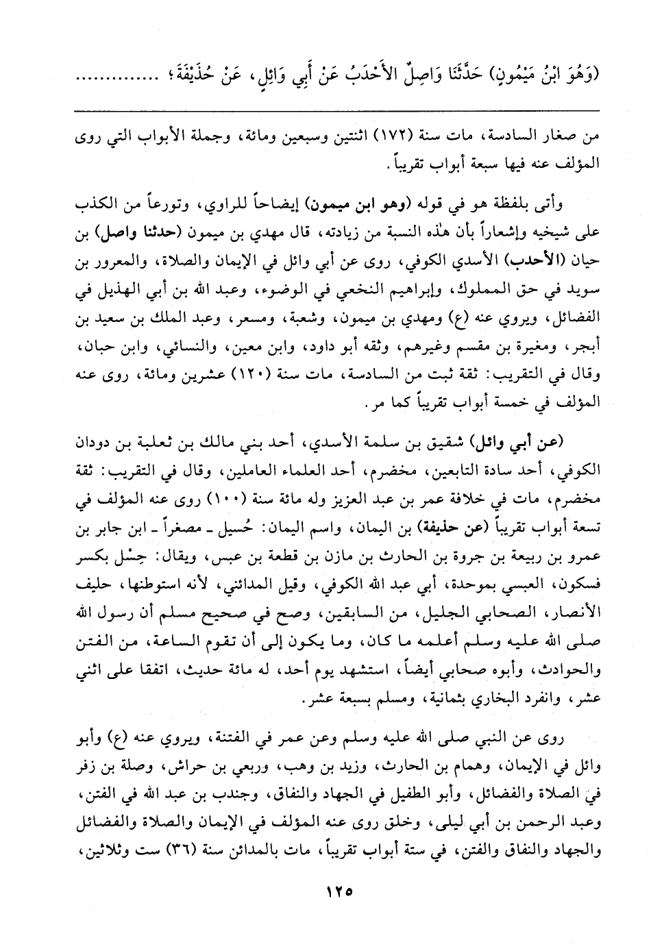وأتى بلفظة هو في قوله (وهو ابن ميمون) إيضاحًا للراوي، وتورعًا من الكذب على شيخيه وإشعارًا بأن هذه النسبة من زيادته، قال مهدي بن ميمون (حَدَّثَنَا واصل) بن حيان (الأحدب) الأسدي الكوفي، روى عن أبي وائل في الإيمان والصلاة، والمعرور بن سويد في حق المملوك، وإبراهيم النخعي في الوضوء، وعبد الله بن أبي الهذيل في الفضائل، ويروي عنه (ع) ومهدي بن ميمون، وشعبة، ومسعر، وعبد الملك بن سعيد بن أبجر، ومغيرة بن مقسم وغيرهم، وثقه أبو داود، وابن معين، والنَّسائي، وابن حبان، وقال في التقريب: ثقة ثبت من السادسة، مات سنة (١٢٠) عشرين ومائة، روى عنه المؤلف في خمسة أَبواب تقريبًا كما مر.