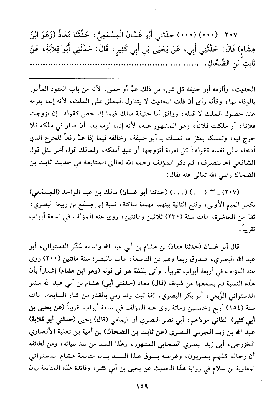 (٢٠٧) - (٠٠) (٠٠) (حدثنا أبو غسان) مالك بن عبد الواحد (المِسمَعي) بكسر الميم الأولى، وفتح الثانية بينهما مهملة ساكنة، نسبة إلى مِسمَع بن ربيعة البصري، ثقة من العاشرة، مات سنة (٢٣٠) ثلاثين ومائتين، روى عنه المؤلف في تسعة أبواب تقريبًا.