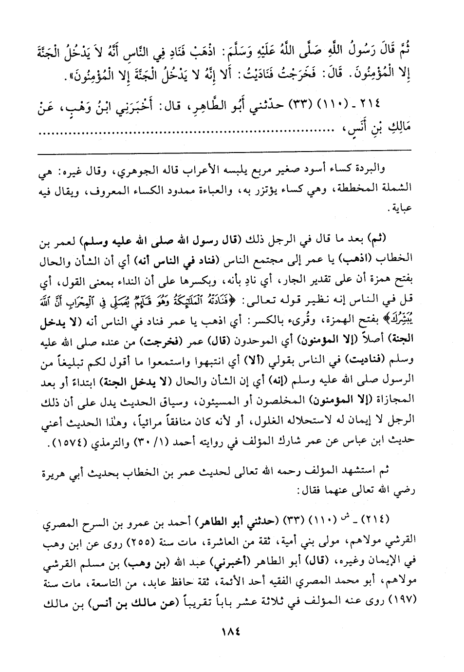 ٢١٤ - (١١٠) (٣٣) حدثني أَبُو الطَّاهِرِ، قال: أَخْبَرَنِي ابْنُ وَهْبٍ، عَنْ مَالِكِ بْنِ أنَسٍ،