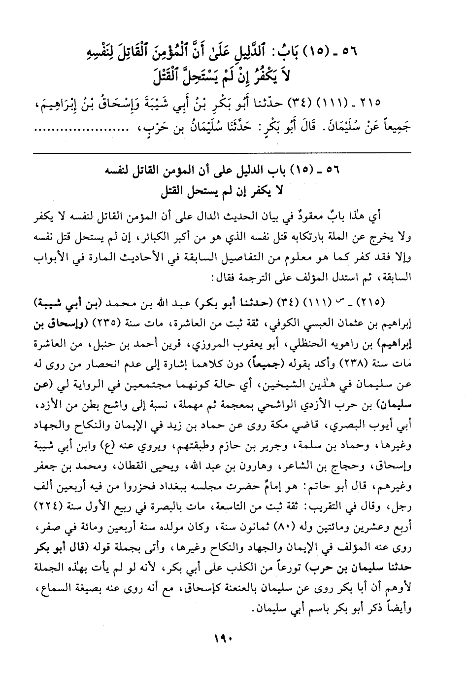 ٢١٥ - (١١١) (٣٤) حدَّثنا أَبُو بَكْرِ بْنُ أَبِي شَيبَةَ وَإِسْحَاقُ بْنُ إِبْرَاهِيمَ، جَمِيعًا عَنْ سُلَيمَانَ. قَال أَبُو بَكْرٍ: حَدَّثَنَا سُلَيمَانُ بن حَرْبٍ،