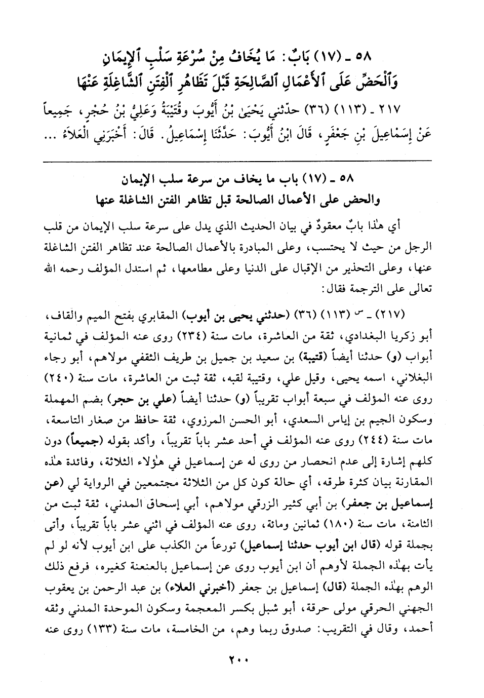 ٥٨ - (١٧) بَابٌ: مَا يُخَافُ مِنْ سُرْعَةِ سَلْبِ الإيمَانِ وَالْحَضِّ عَلَى الأَعْمَالِ الصَّالِحَةِ قَبْلَ تَظَاهُرِ الْفِتَنِ الشَّاغِلَةِ عَنْهَا