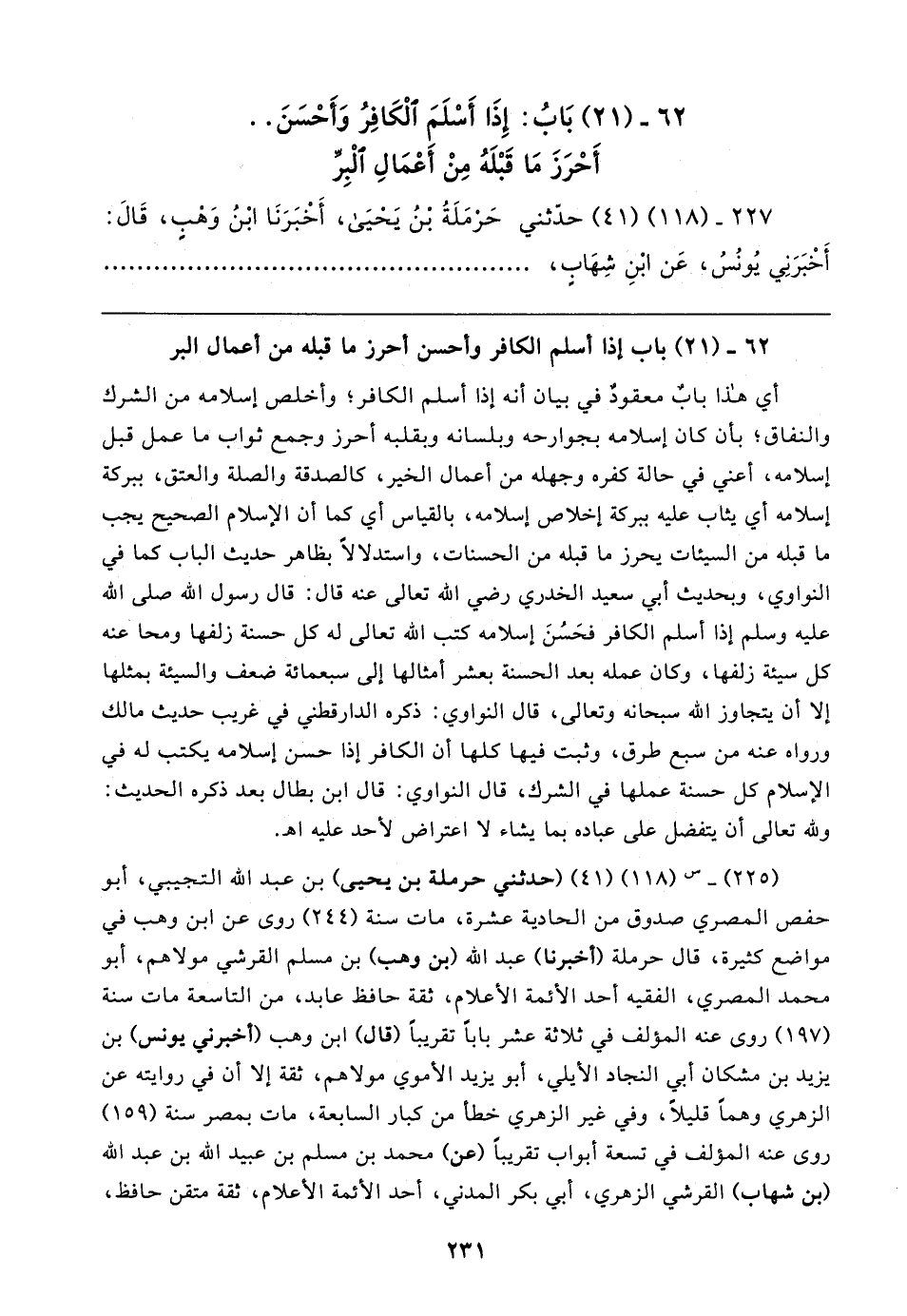 ٦٢ - (٢١) بَابُ: إِذَا أَسْلَمَ الْكَافِرُ وَأَحْسَنَ .. أَحْرَزَ مَا قَبْلَهُ مِنْ أَعْمَالِ الْبِرِّ