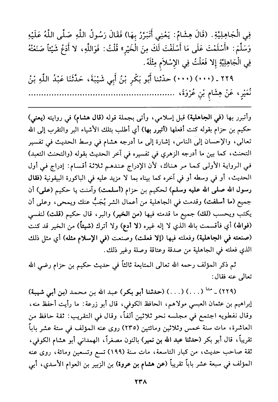 ٢٢٩ - (٠٠) (٠٠) حدَّثنا أَبُو بَكْرِ بْنُ أَبِي شَيبَةَ، حَدَّثَنَا عَبْدُ اللهِ بْنُ نُمَيرٍ، عَنْ هِشَامِ بْنِ عُرْوَةَ،