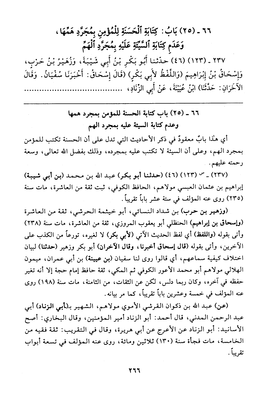 ٦٦ - (٢٥) بَابُ: كِتَابَةِ الْحَسَنَةِ لِلْمُؤْمِنِ بِمُجَرَّدِ هَمِّهَا، وَعَدَمِ كِتَابَةِ السَّيِّئَةِ عَلَيهِ بِمُجَرَّدِ الْهَمِّ