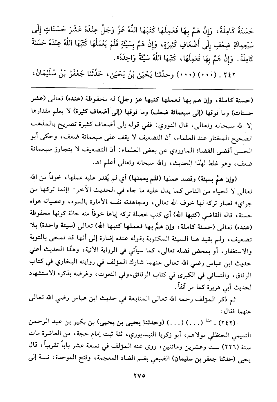 ٢٤٢ - (. . .) (. . .) وحدّثنا يَحْيَى بْنُ يَحْيَى، حَدَّثَنَا جَعْفَرُ بْنُ سُلَيمَانَ،