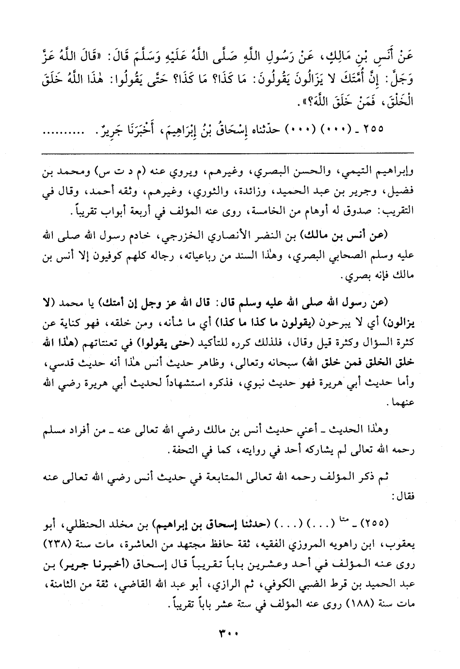 (٢٥٥) - متا (. . .) (. . .) (حدثنا إسحاق بن إبراهيم) بن مخلد الحنظلي، أبو يعقوب، ابن راهويه المروزي الفقيه، ثقة حافظ مجتهد من العاشرة، مات سنة (٢٣٨) روى عنه المؤلف في أحد وعشرين بابًا تقريبًا قال إسحاق (أخبرنا جرير) بن عبد الحميد بن قرط الضبي الكوفي، ثمَّ الرازي، أبو عبد الله القاضي، ثقة من الثامنة، مات سنة (١٨٨) روى عنه المؤلف في ستة عشر بابًا تقريبًا.