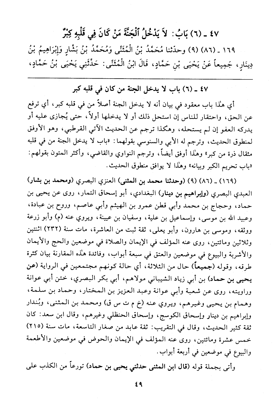 ٤٧ - (٦) بَابُ: لا يدخُلُ الْجَنَّةَ مَنْ كَانَ في قَلْبِهِ كِبْرٌ