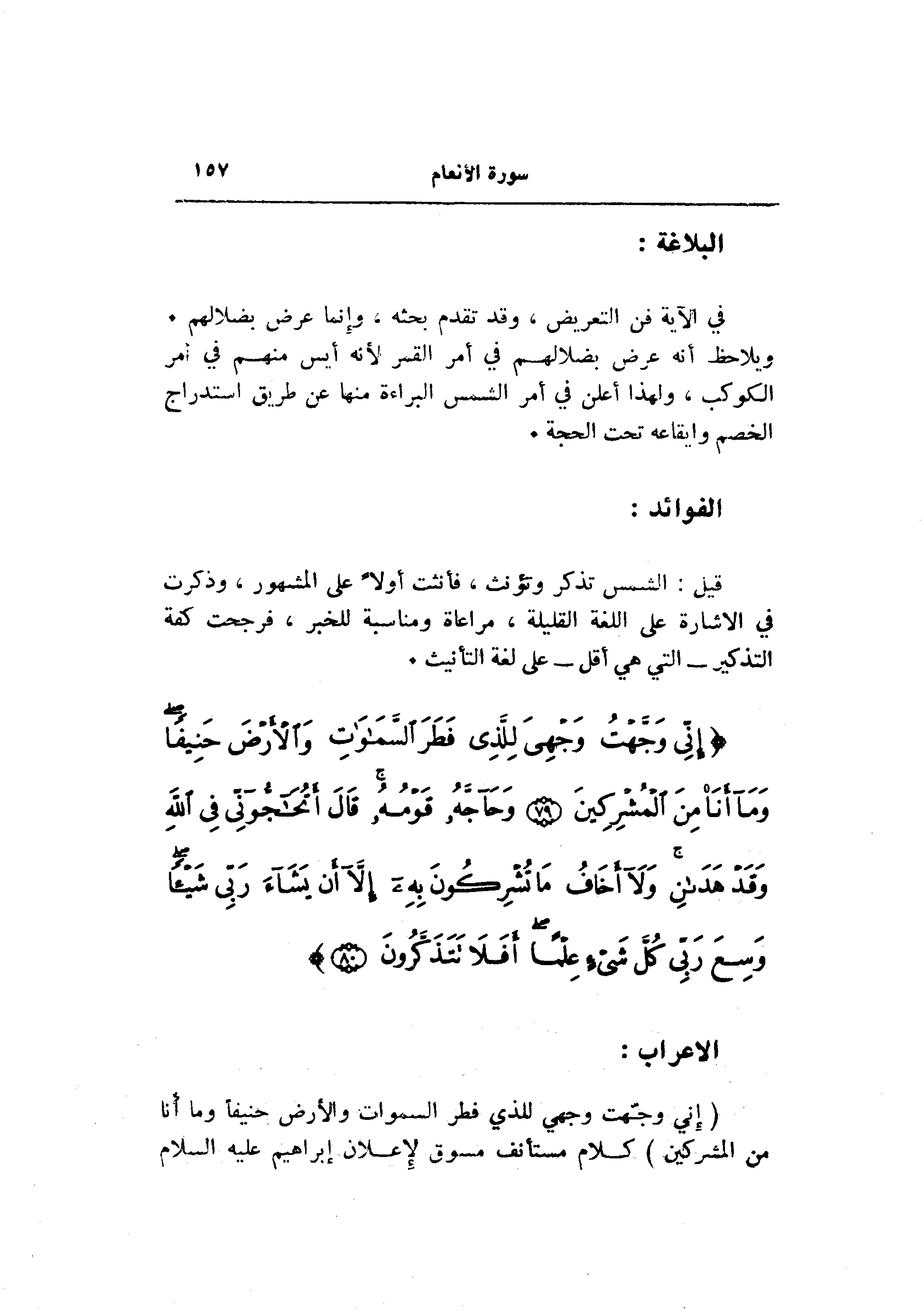 ويلاحظ أنه عرض بضلالهم في أمر القمر لأنه أيس منهم في أمر الكوكب، ولهذا أعلن في أمر الشمس البراءة منها عن طريق استدراج الخصم وإيقاعه تحت الحجة.