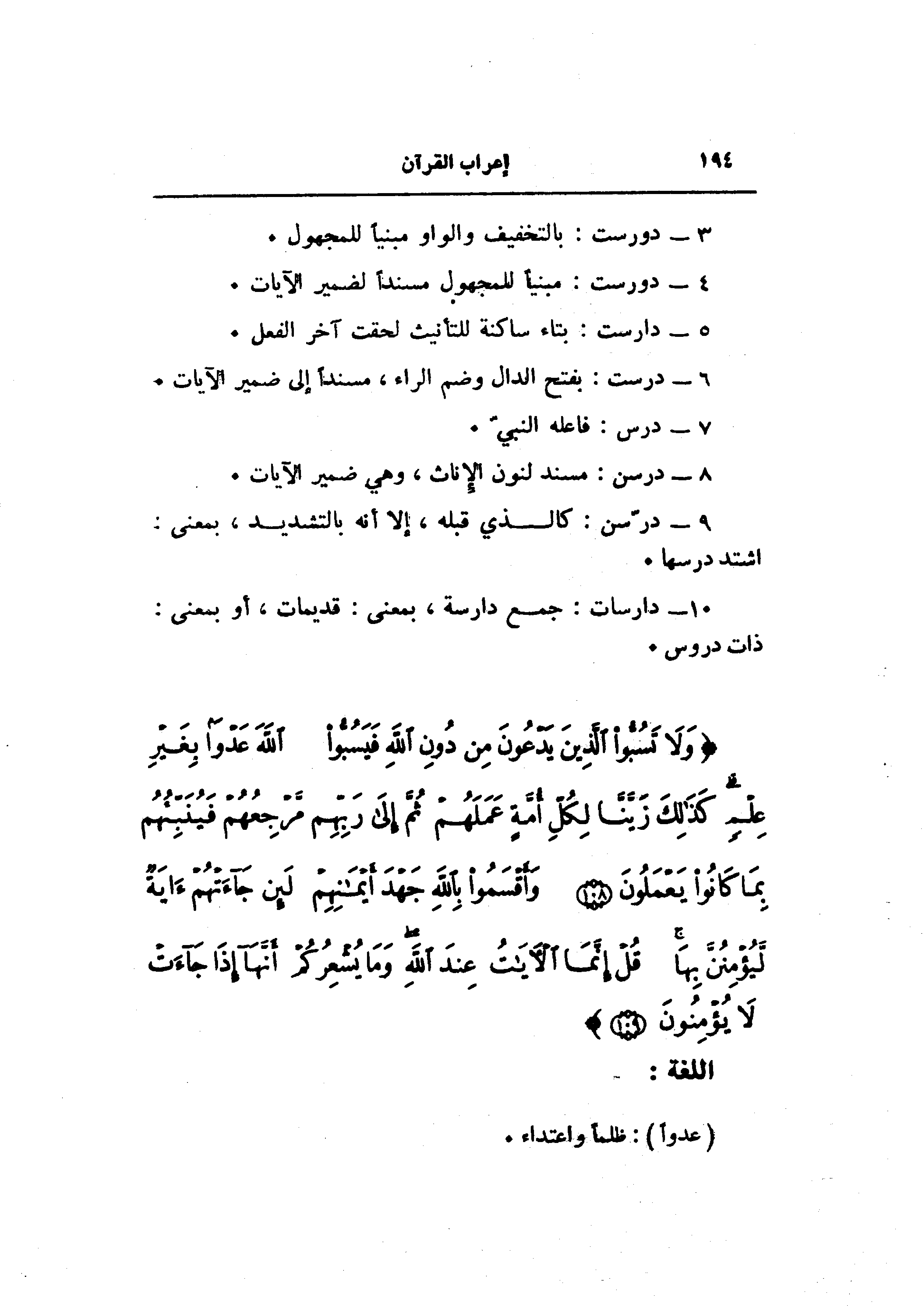 6- درست: بفتح الدال وضم الراء، مسندا إلى ضمير الآيات.
