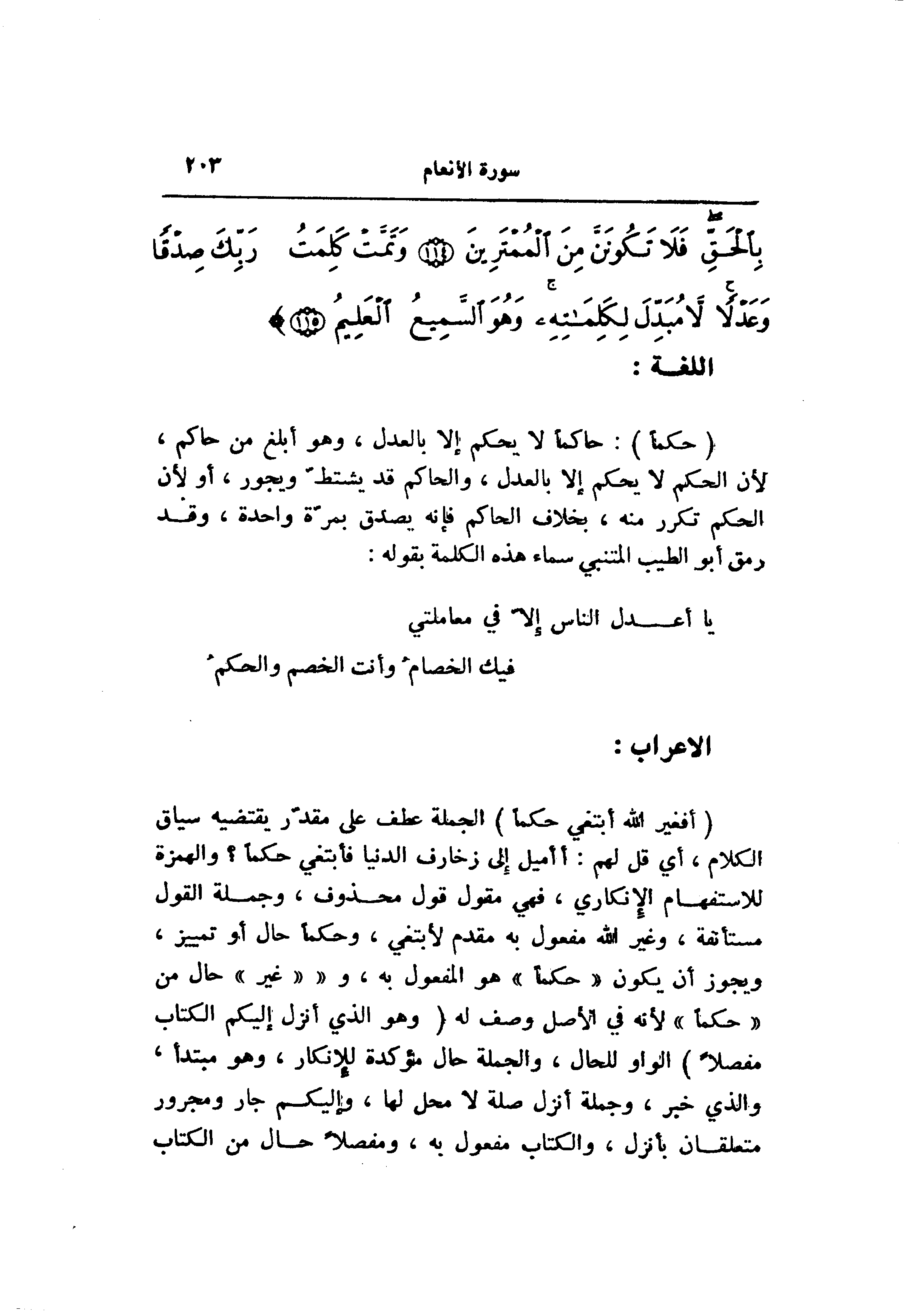 (حَكَماً) : حاكما لا يحكم إلا بالعدل، وهو أبلغ من حاكم، لأن الحكم لا يحكم إلا بالعدل، والحاكم قد يشتطّ ويجور، أو لأن الحكم تكرر منه، بخلاف الحاكم فإنه يصدق بمرّة واحدة، وقد رمق أبو الطيب المتنبي سماء هذه الكلمة بقوله: