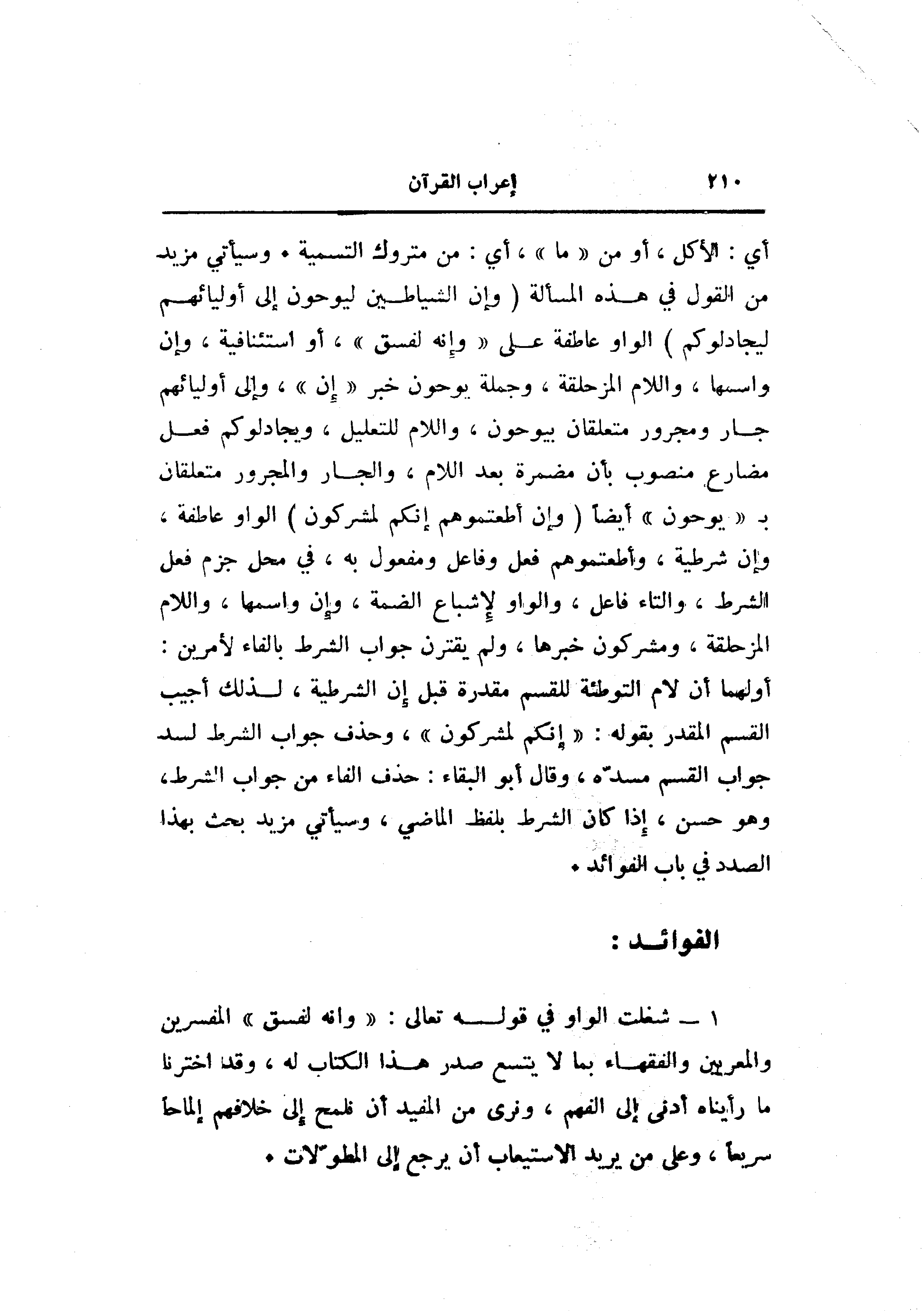 1- شغلت الواو في قوله تعالى: «وانه لفسق» المفسرين والمعربين والفقهاء بما لا يتسع صدر هذا الكتاب له، وقد اخترنا ما رأيناه أدنى إلى الفهم، ونرى من المفيد أن نلمح إلى خلافهم إلماحا سريعا، وعلى من يريد الاستيعاب أن يرجع إلى المطوّلات.