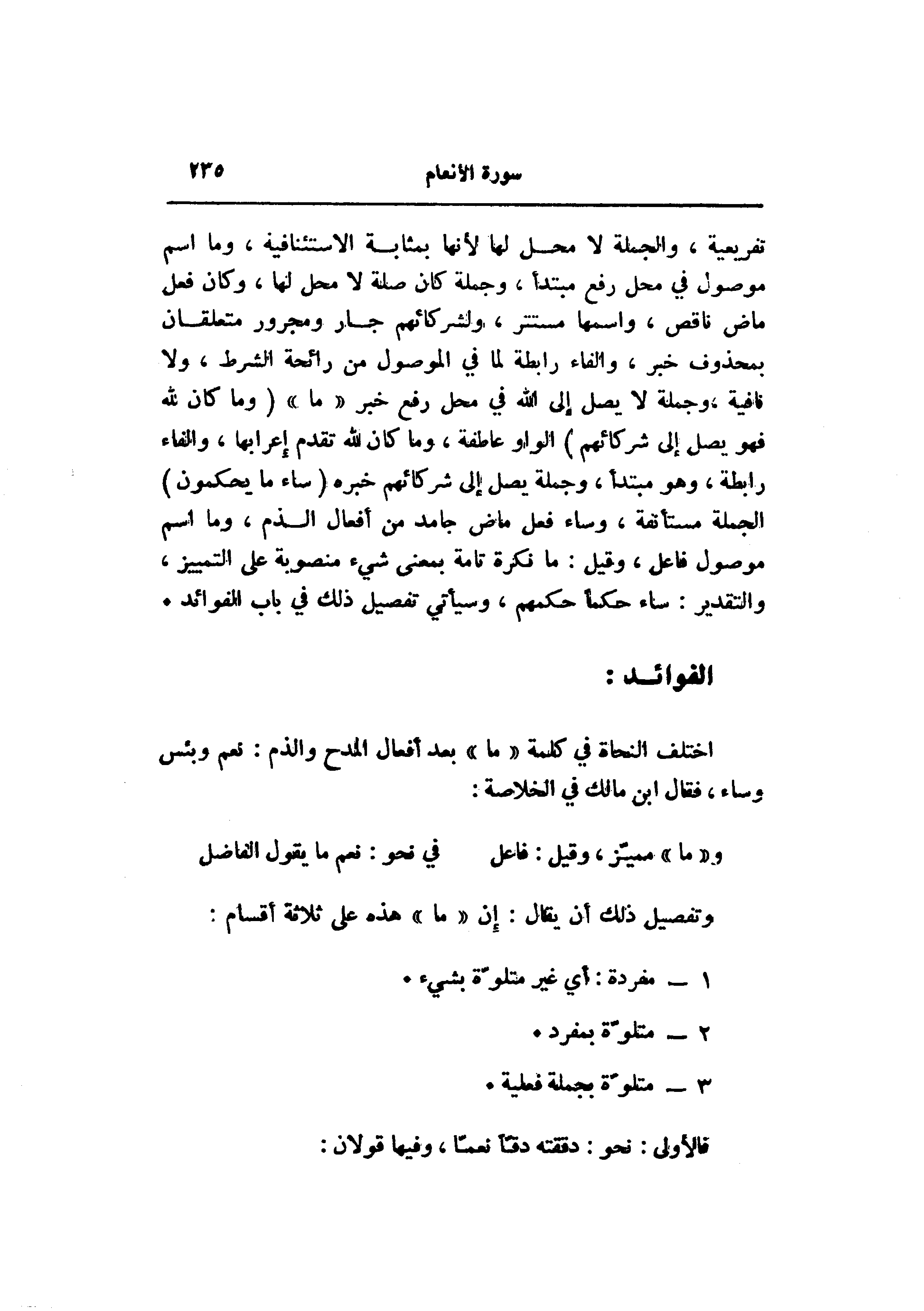 وتفصيل ذلك أن يقال: إنّ «ما» هذه على ثلاثة أقسام: