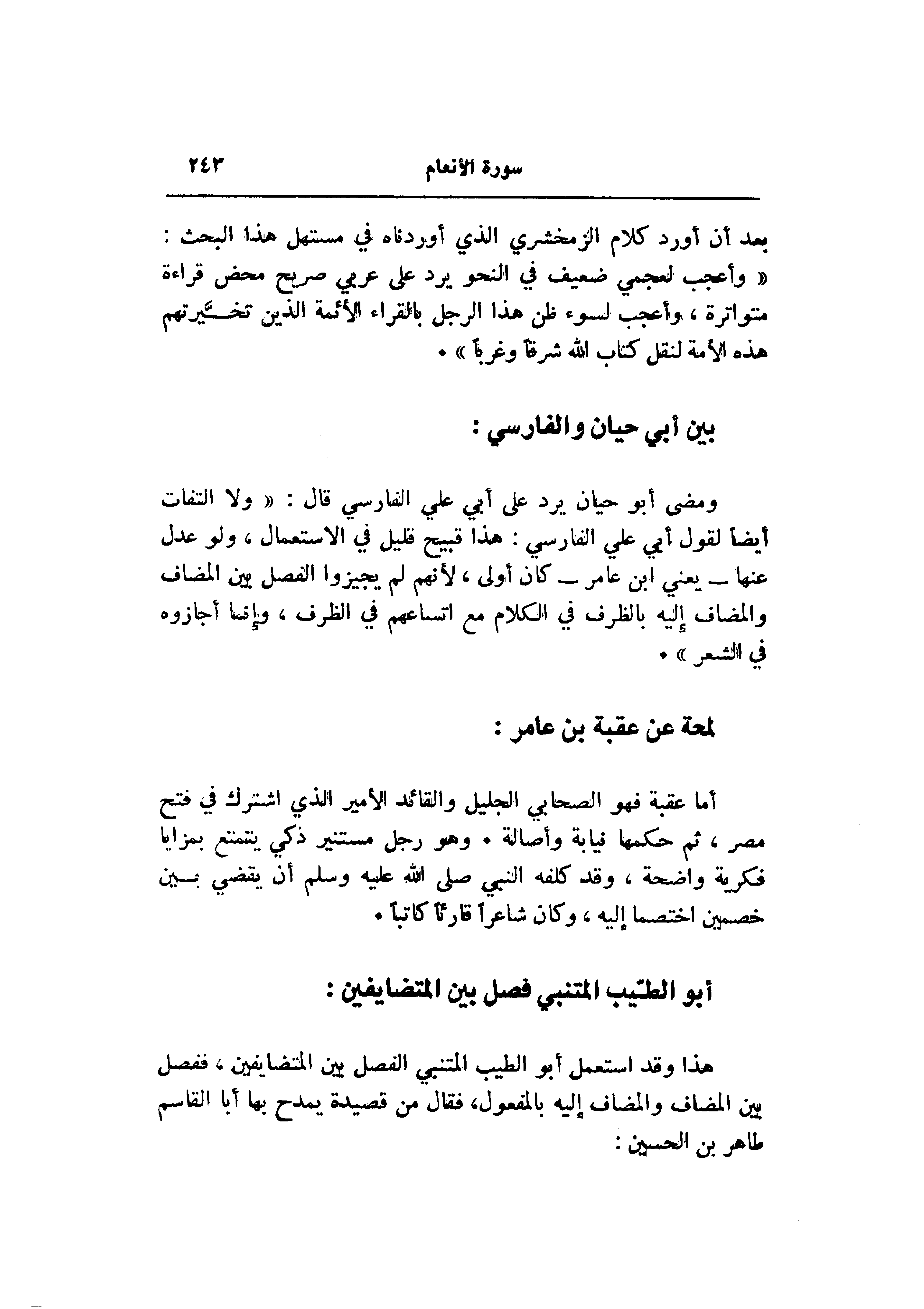 أبو الطيّب المتنبي فصل بين المتضايفين: