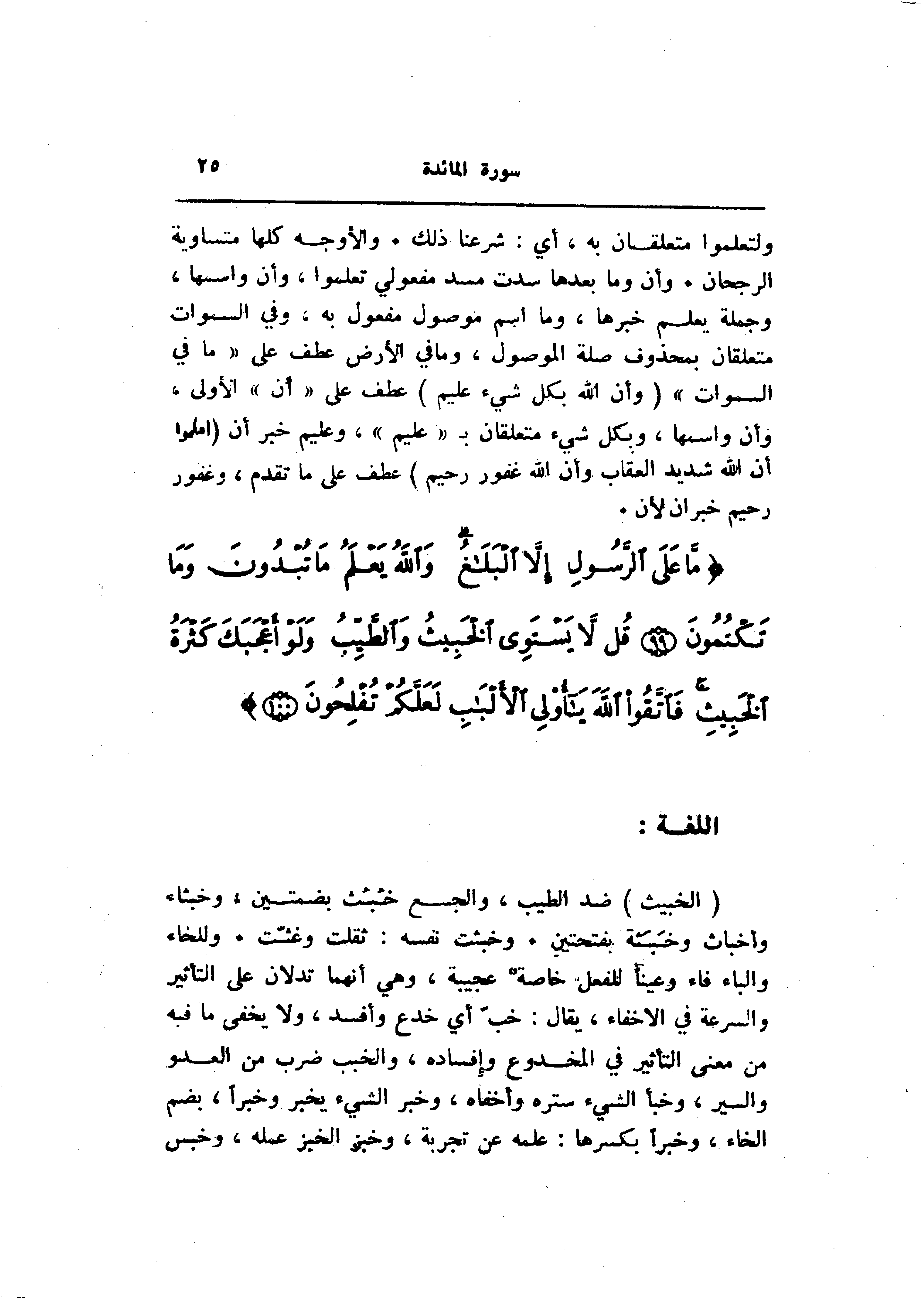 ما عَلَى الرَّسُولِ إِلاَّ الْبَلاغُ وَاللَّهُ يَعْلَمُ ما تُبْدُونَ وَما تَكْتُمُونَ (99) قُلْ لا يَسْتَوِي الْخَبِيثُ وَالطَّيِّبُ وَلَوْ أَعْجَبَكَ كَثْرَةُ الْخَبِيثِ فَاتَّقُوا اللَّهَ يا أُولِي الْأَلْبابِ لَعَلَّكُمْ تُفْلِحُونَ (100)