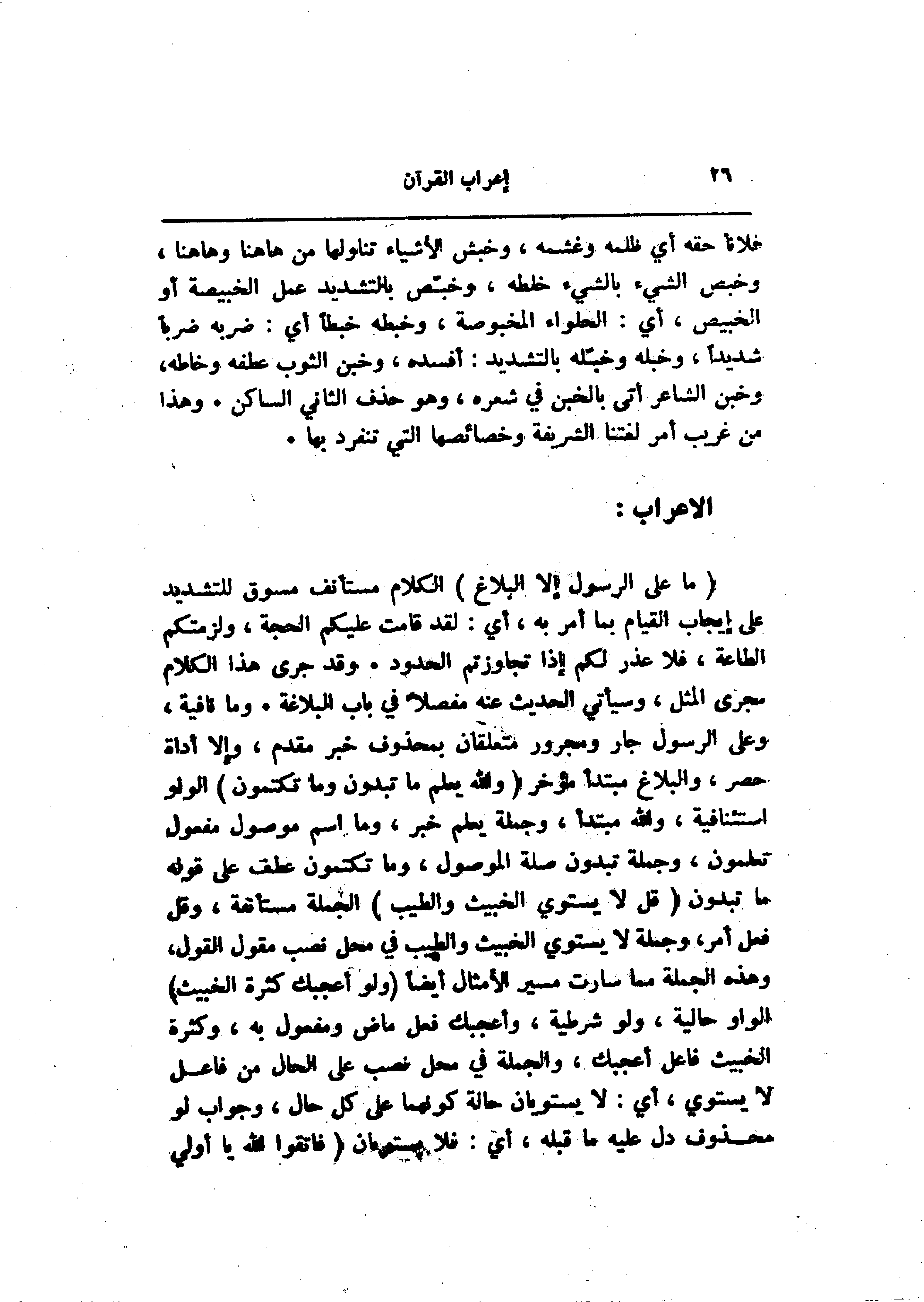 (ما عَلَى الرَّسُولِ إِلَّا الْبَلاغُ) الكلام مستأنف مسوق للتشديد على إيجاب القيام بما أمر به، أي: لقد قامت عليكم الحجة، ولزمتكم الطاعة، فلا عذر لكم إذا تجاوزتم الحدود. وقد جرى هذا الكلام مجرى المثل، وسيأتي الحديث عنه مفصلا في باب البلاغة. وما نافية، وعلى الرسول جار ومجرور متعلقان بمحذوف خبر مقدم، وإلا أداة حصر، والبلاغ مبتدأ مؤخر (وَاللَّهُ يَعْلَمُ ما تُبْدُونَ وَما تَكْتُمُونَ) الواو استئنافية، والله مبتدأ، وجملة يعلم خبر، وما اسم موصول مفعول تعلمون، وجملة تبدون صلة الموصول، وما تكتمون عطف على قوله ما تبدون (قُلْ لا يَسْتَوِي الْخَبِيثُ وَالطَّيِّبُ) الجملة مستأنفة، وقل فعل أمر، وجملة لا يستوي الخبيث والطيب في محل نصب مقول القول، وهذه الجملة مما سارت مسير الأمثال أيضا (وَلَوْ أَعْجَبَكَ كَثْرَةُ الْخَبِيثِ) الواو حالية، ولو شرطية، وأعجبك فعل ماض ومفعول به، وكثرة الخبيث فاعل أعجبك، والجملة في محل نصب على الحال من فاعل لا يستوي، أي: لا يستويان حالة كونهما على كل حال، وجواب لو محذوف دل عليه ما قبله، أي: فلا يستويان (فَاتَّقُوا اللَّهَ يا أُولِي