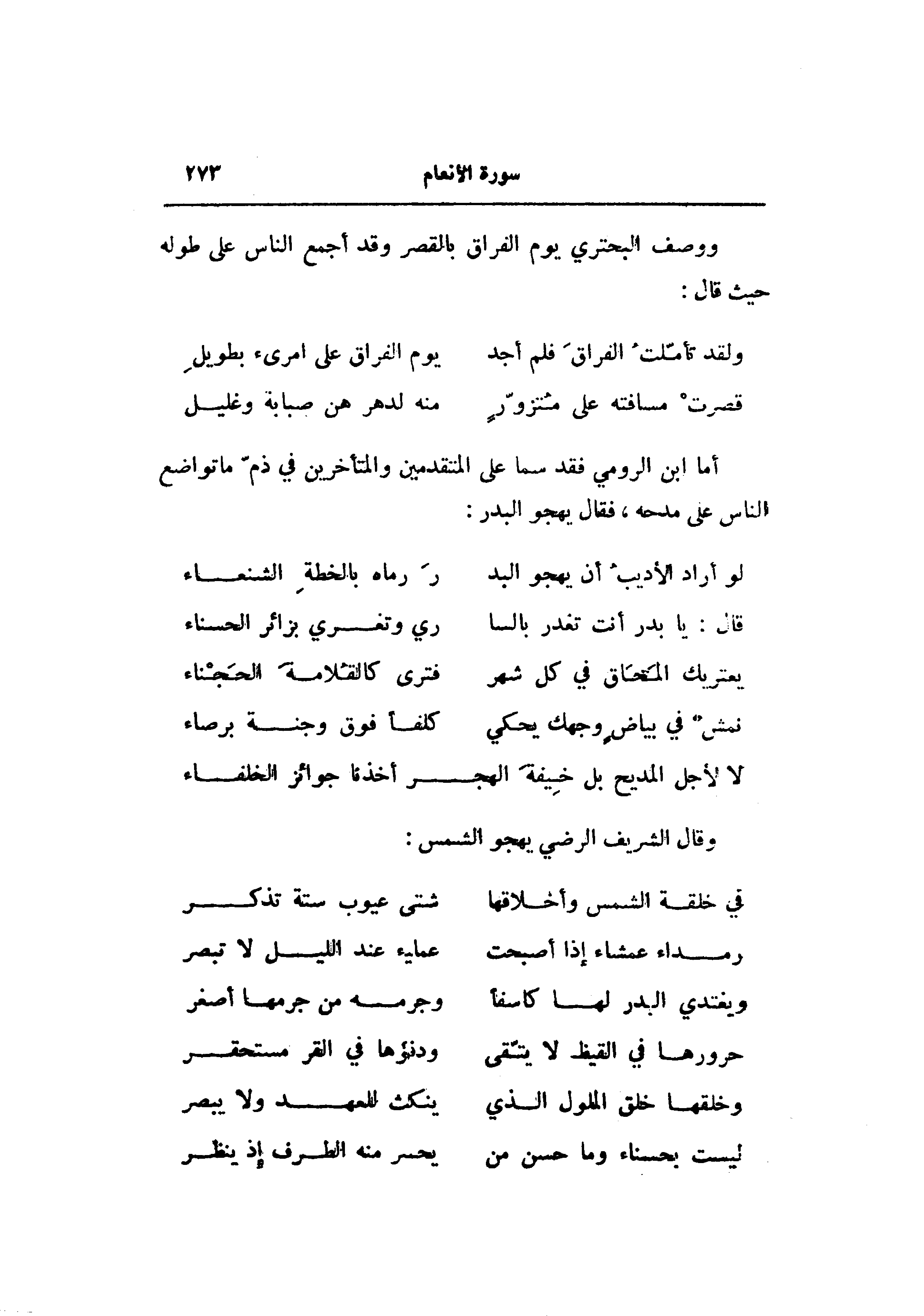 أما ابن الرومي فقد سما على المتقدمين والمتأخرين في ذمّ ما تواضع الناس على مدحه، فقال يهجو البدر: