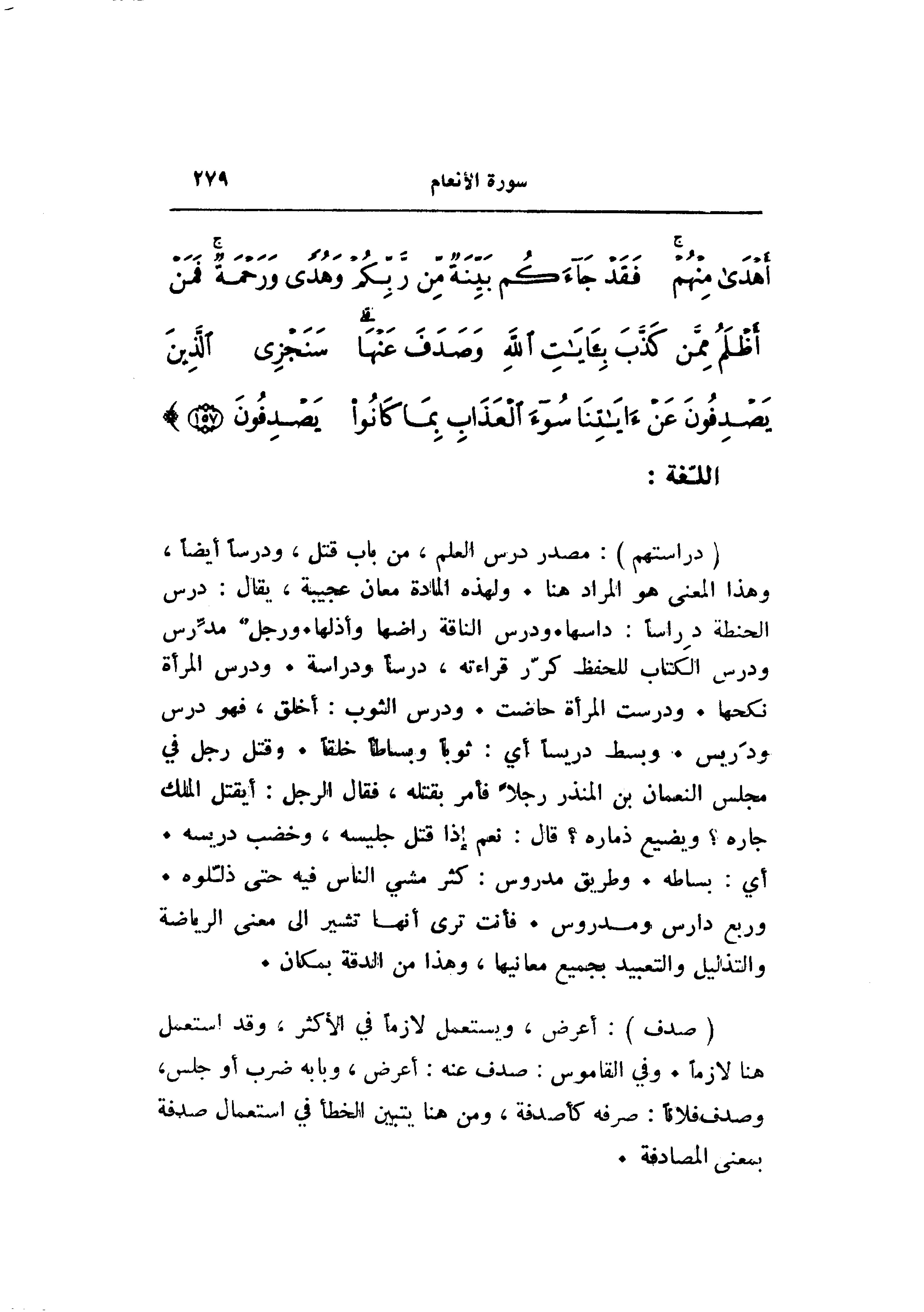 (صَدَفَ) : أعرض، ويستعمل لازما في الأكثر، وقد استعمل هنا لازما. وفي القاموس: صدف عنه: أعرض، وبابه ضرب أو جلس، وصدف فلانا: صرفه كأصدفة، ومن هنا يتبين الخطأ في استعمال صدفة بمعنى المصادفة.