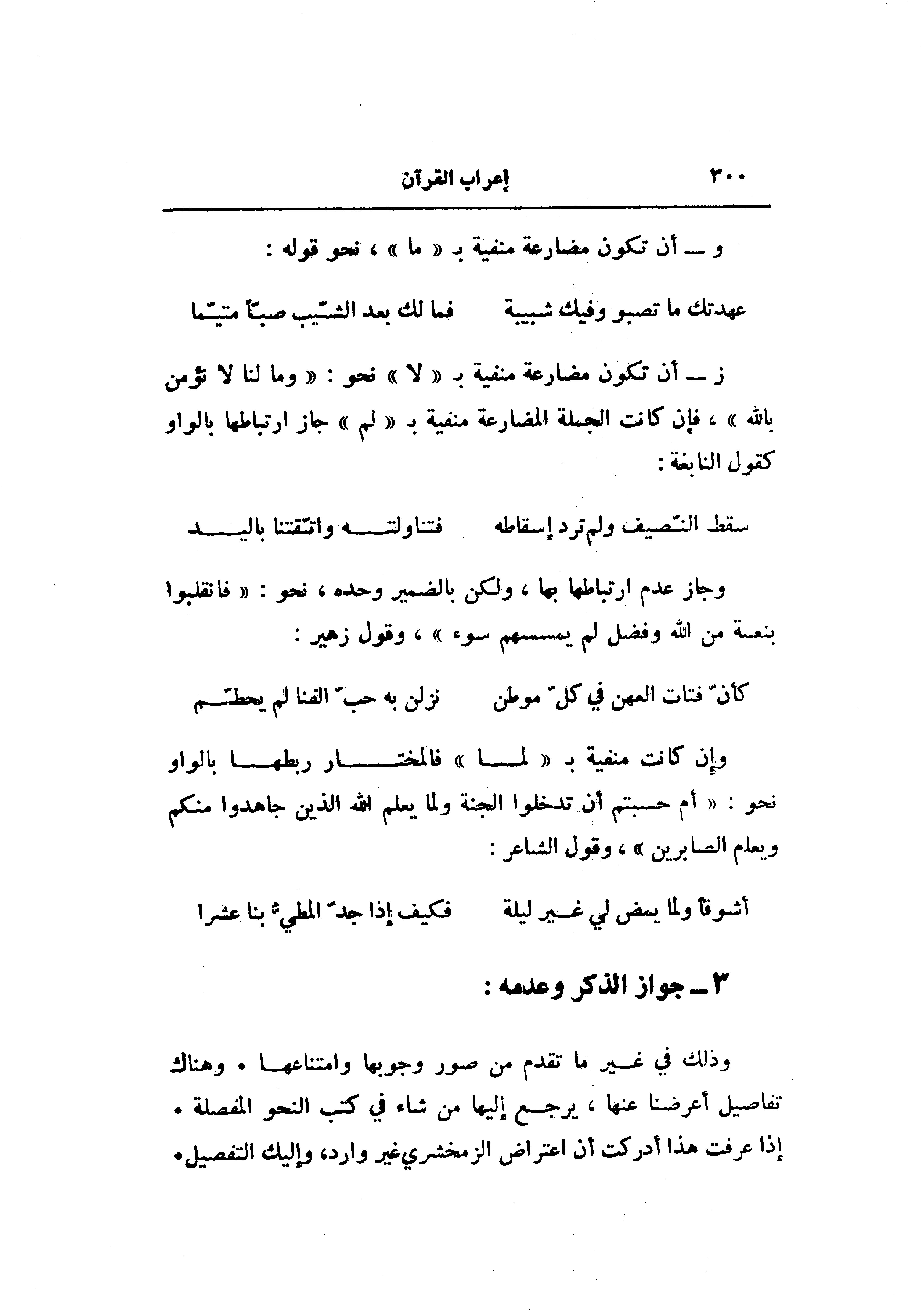 وجاز عدم ارتباطها بها، ولكن بالضمير وحده، نحو: «فانقلبوا بنعمة من الله وفضل لم يمسسهم سوء» ، وقول زهير: