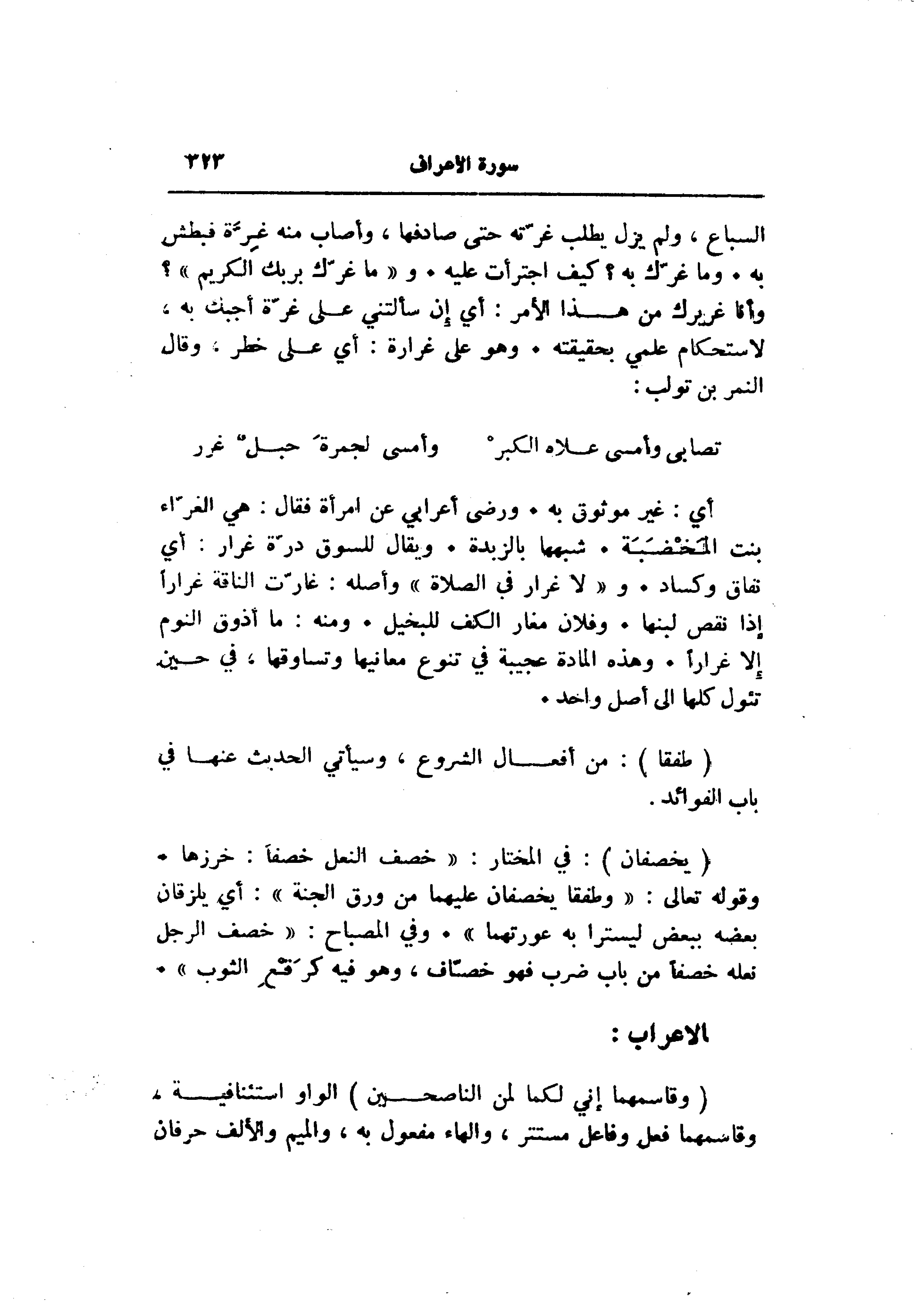 وقوله تعالى: «وطفقا يخصفان عليهما من ورق الجنة» : أي يلزقان بعضه ببعض ليسترا به عورتهما» . وفي المصباح: «خصف الرجل نعله خصفا من باب ضرب فهو خصّاف، وهو فيه كرقع الثوب» .