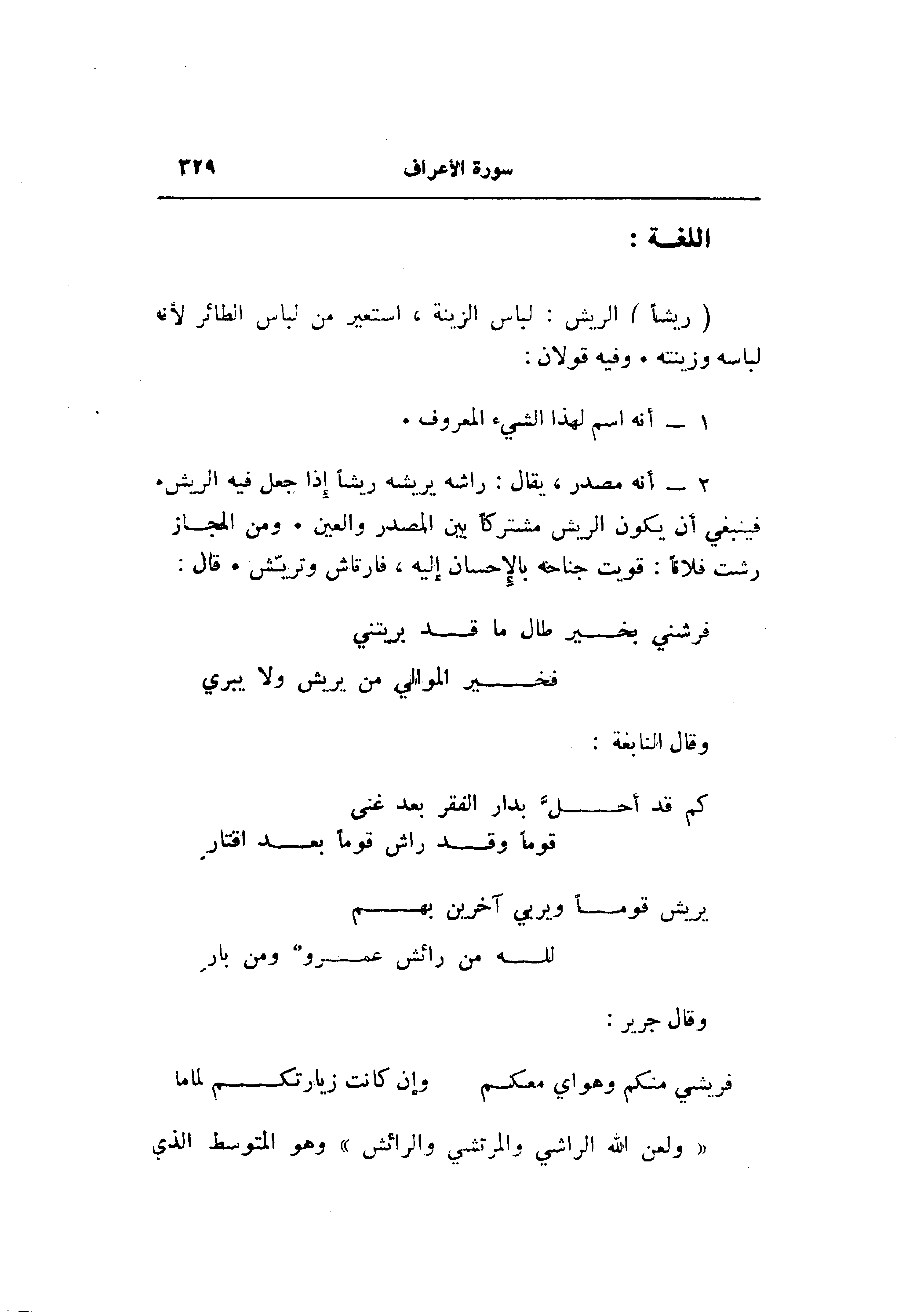 2- أنه مصدر، يقال: راشه يريشه ريشا إذا جعل فيه الريش.