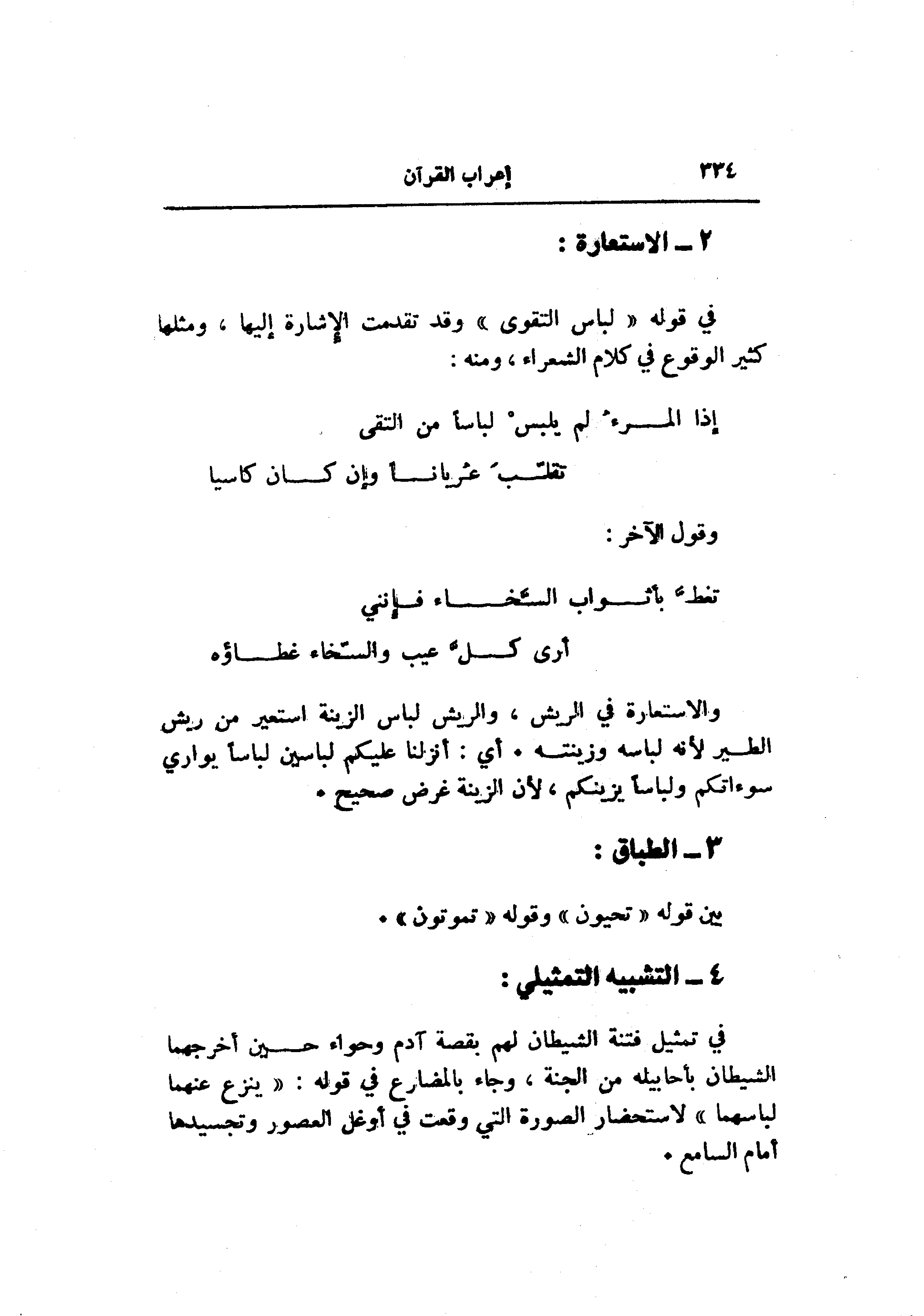 في قوله «لباس التقوى» وقد تقدمت الإشارة إليها، ومثلها كثير الوقوع في كلام الشعراء، ومنه: