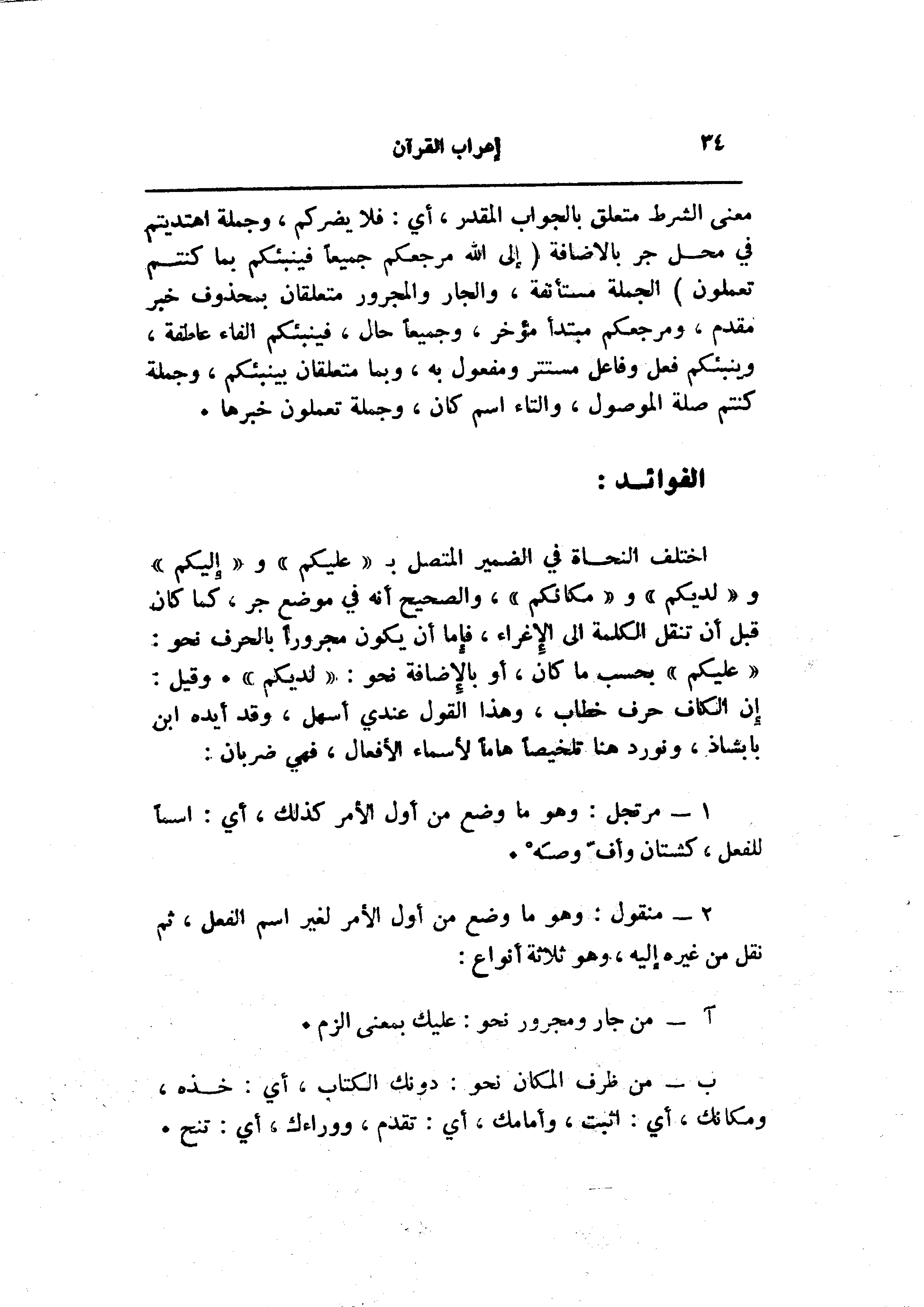 إن الكاف حرف خطاب، وهذا القول عندي أسهل، وقد أيده ابن بابشاذ، ونورد هنا تلخيصا هاما لأسماء الأفعال، فهي ضربان: