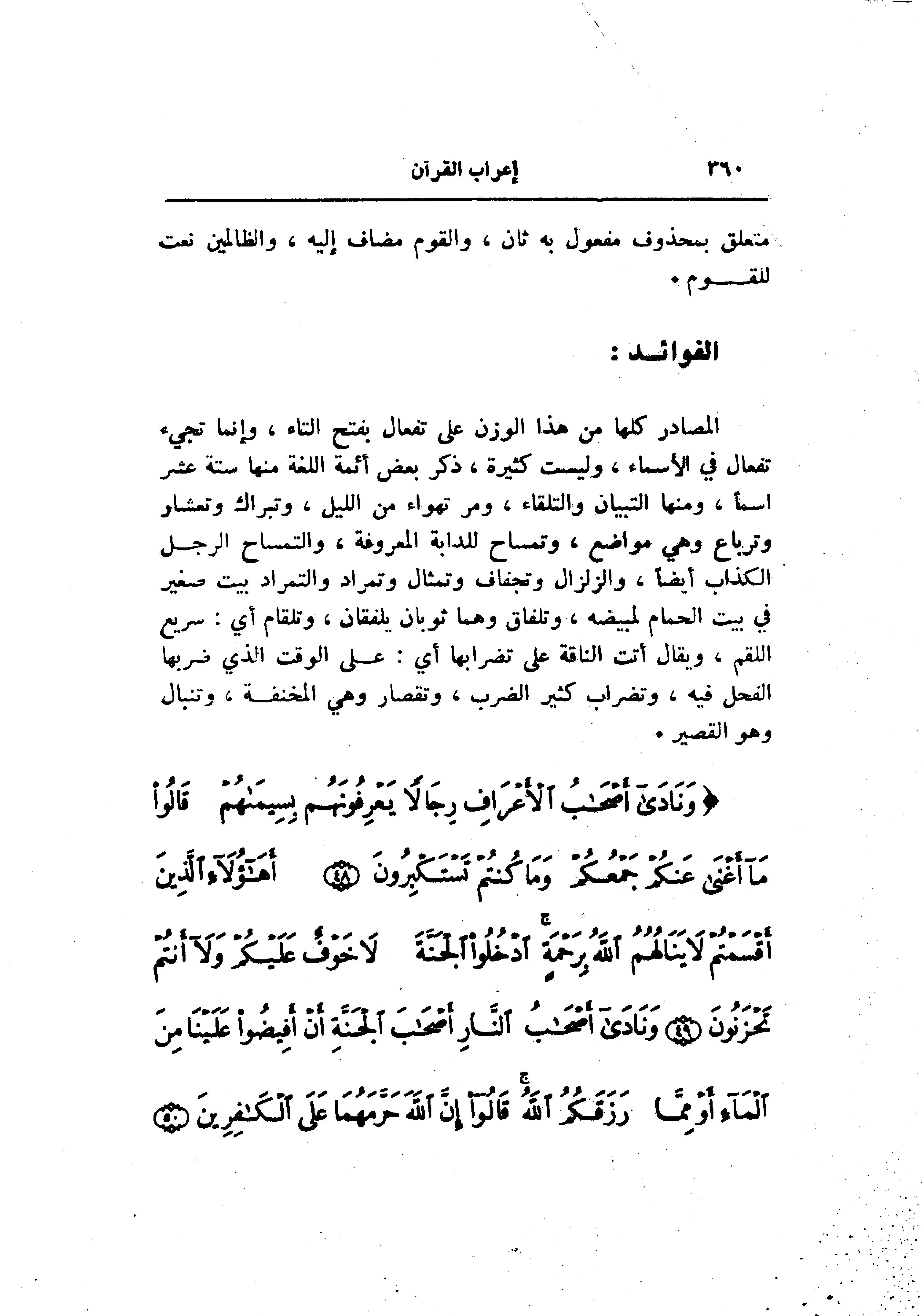 المصادر كلها من هذا الوزن على تفعال بفتح التاء، وإنما تجيء تفعال في الأسماء، وليست كثيرة، ذكر بعض أئمة اللغة منها ستة عشر اسما، ومنها التبيان والتلقاء، ومر تهواء من الليل، وتبراك وتعشار وترباع وهي مواضع، وتمساح للدابة المعروفة، والتمساح الرجل الكذاب أيضا، والزلزال وتجفاف وتمثال وتمراد والتمراد بيت صغير في بيت الحمام لمبيضه، وتلفاق وهما ثوبان يلفقان، وتلقام أي: سريع اللقم، ويقال أتت الناقة على تضرابها أي: على الوقت الذي ضربها الفحل فيه، وتضراب كثير الضرب، وتقصار وهي المخنفة، وتنبال وهو القصير.
