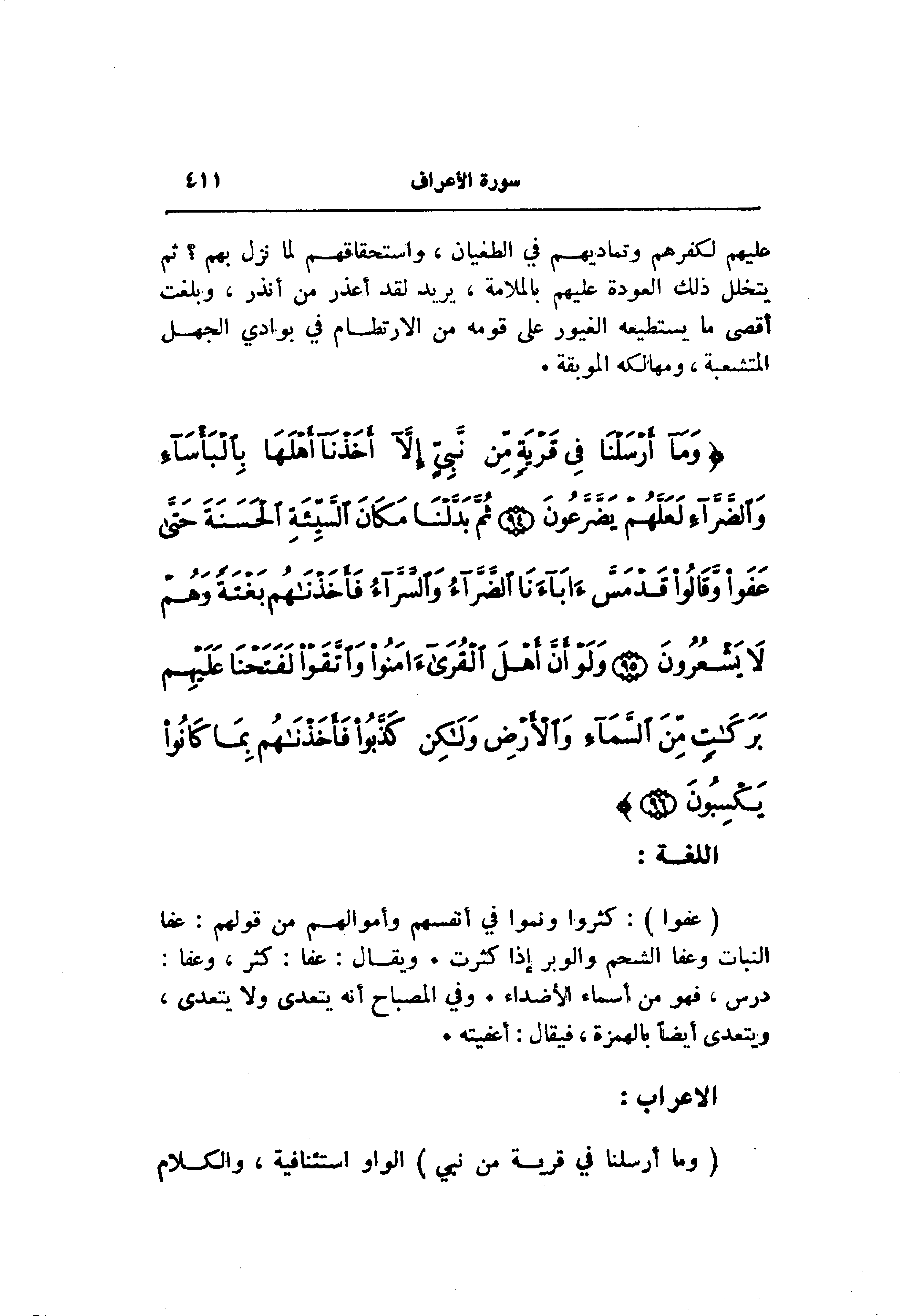 (عَفَوْا) : كثروا ونموا في أنفسهم وأموالهم من قولهم: عفا النبات وعفا الشحم والوبر إذا كثرت. ويقال: عفا: كثر، وعفا: