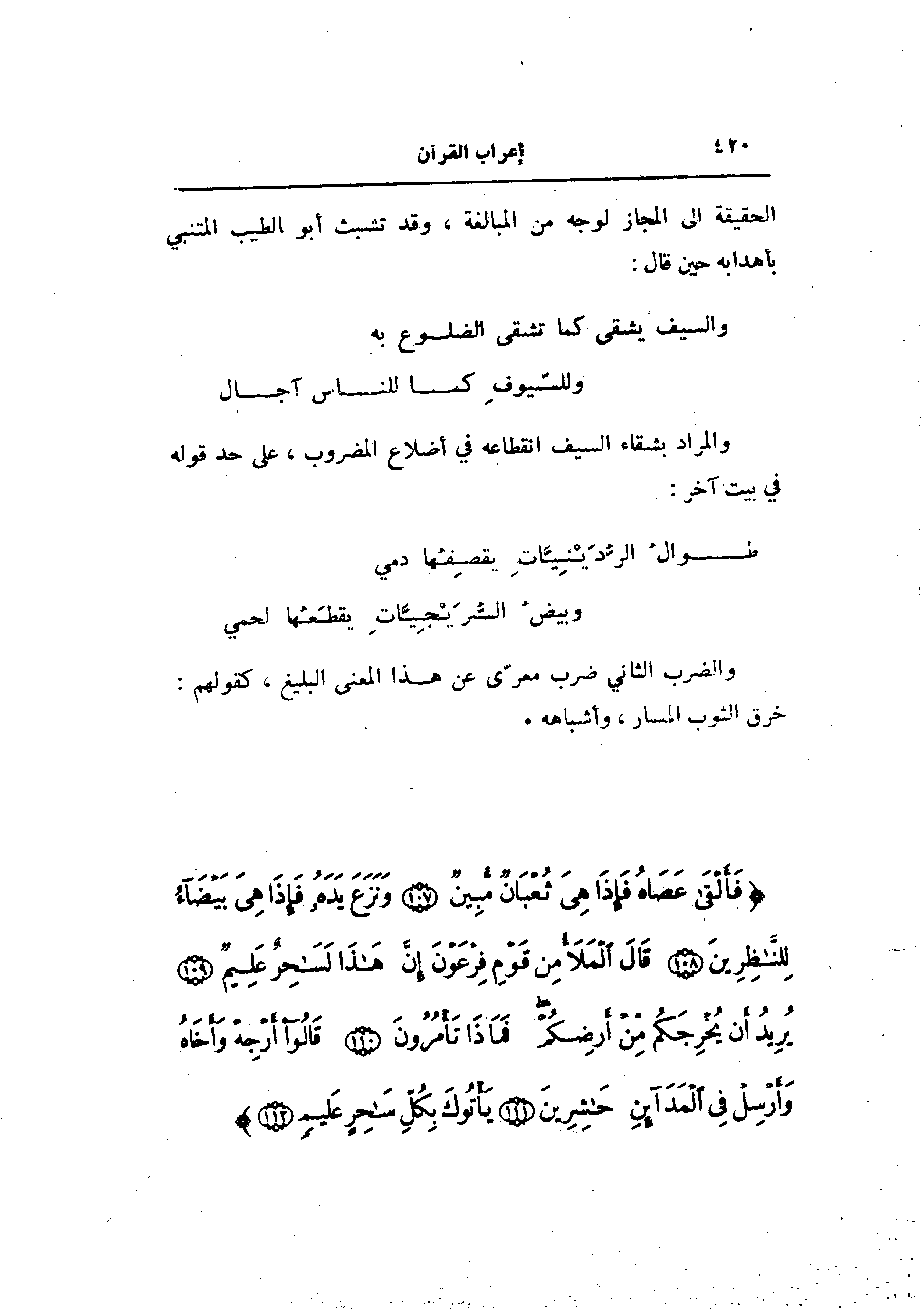 الحقيقة الى المجاز لوجه من المبالغة، وقد تشبث أبو الطيب المتنبي بأهدابه حين قال: