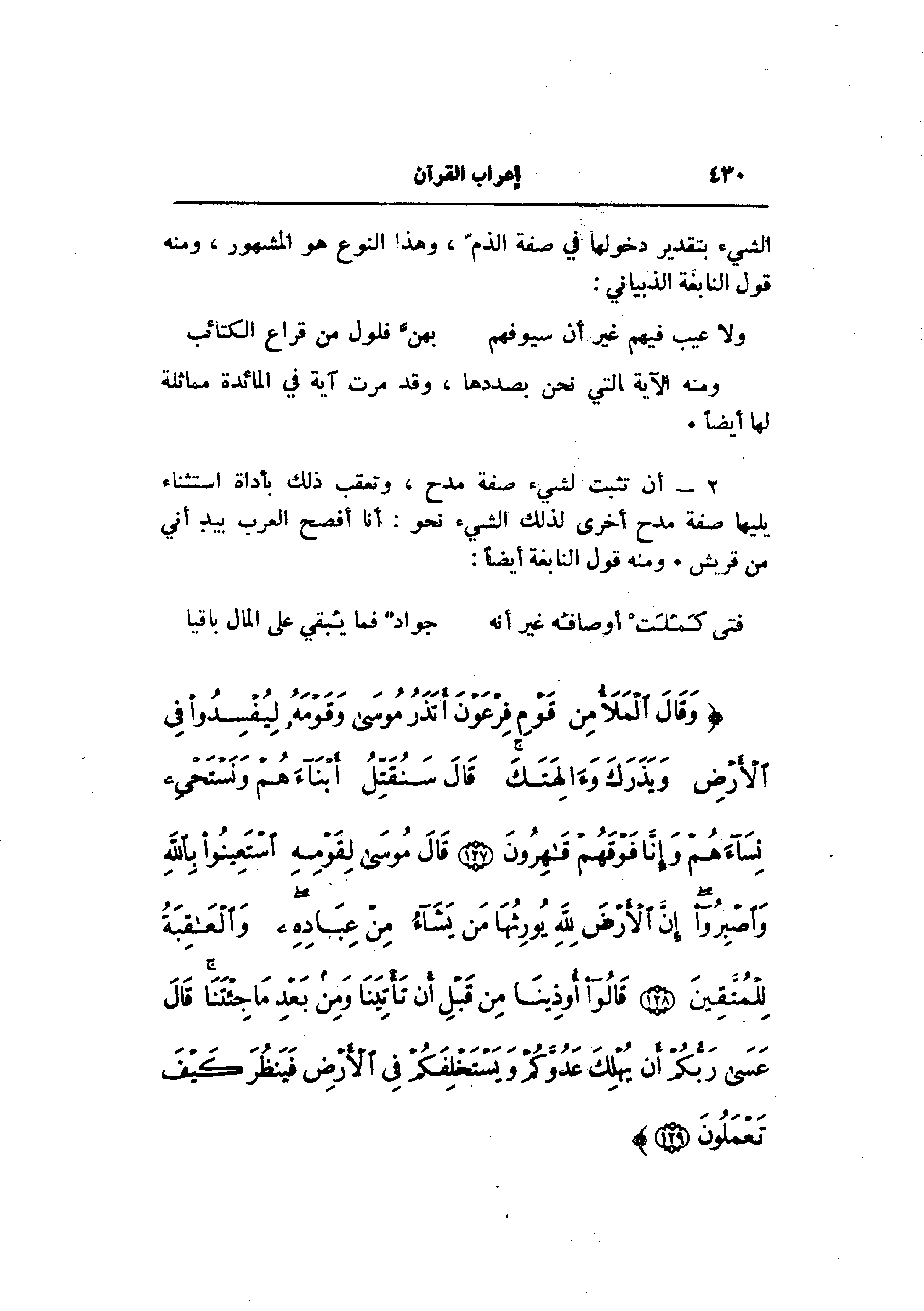 2- أن تثبت لشيء صفة مدح، وتعقب ذلك بأداة استثناء يليها صفة مدح أخرى لذلك الشيء نحو: أنا أفصح العرب بيد أني من قريش. ومنه قول النابغة أيضا: