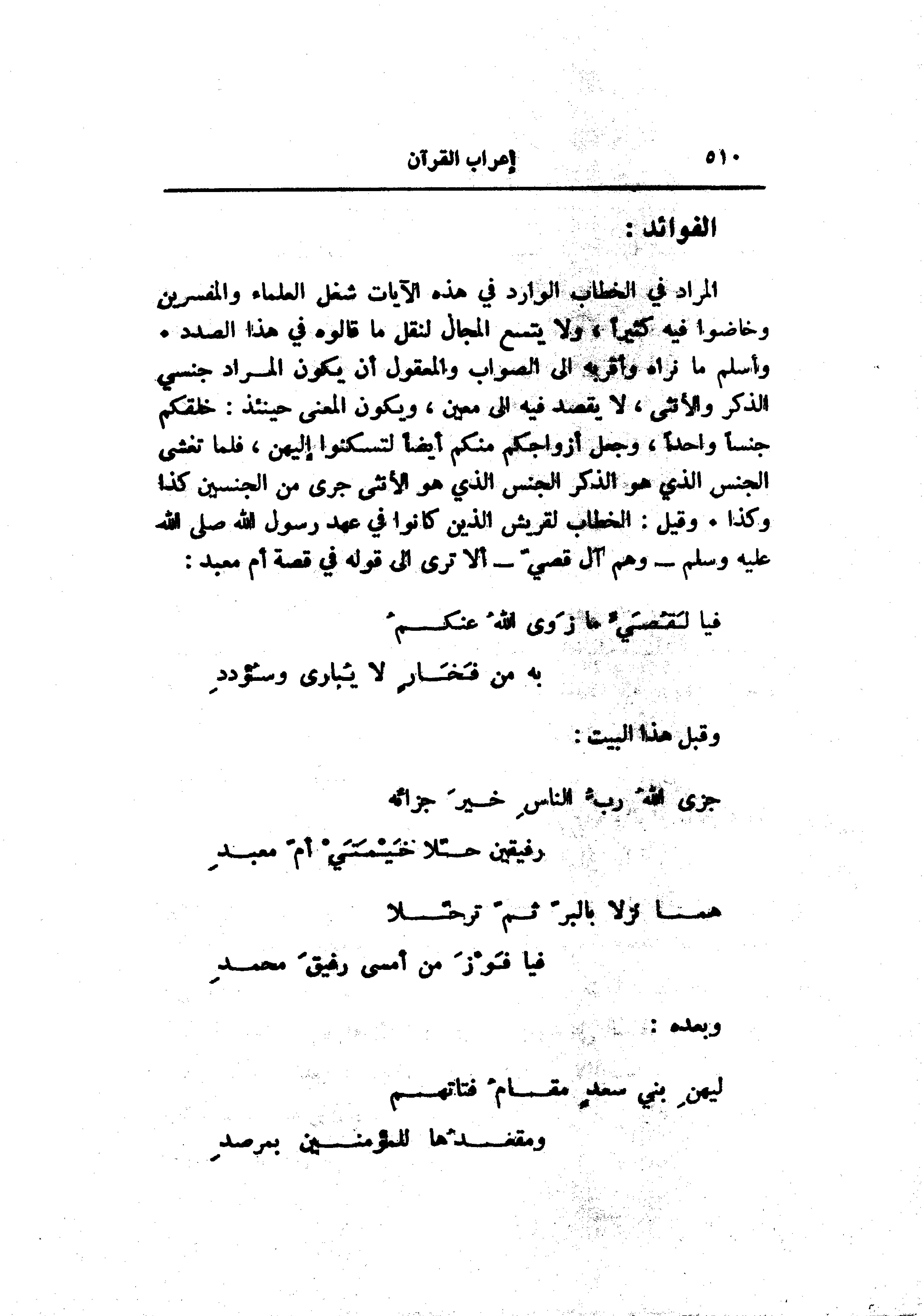 جزى الله ربّ الناس خير جزائه ... رفيقين حلّا خيمتي أم معبد