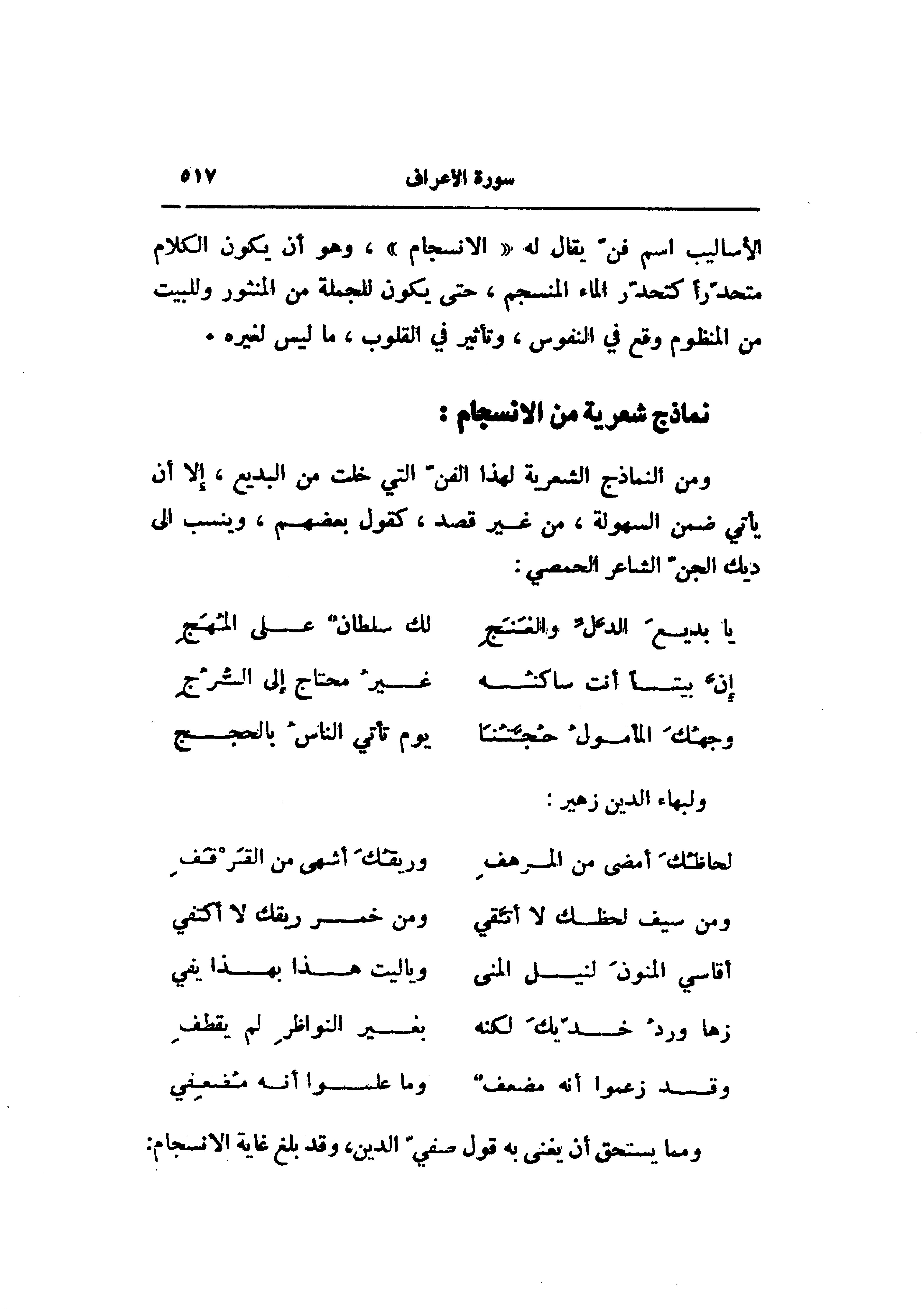ومما يستحق أن يغنى به قول صفيّ الدين، وقد بلغ غاية الانسجام: