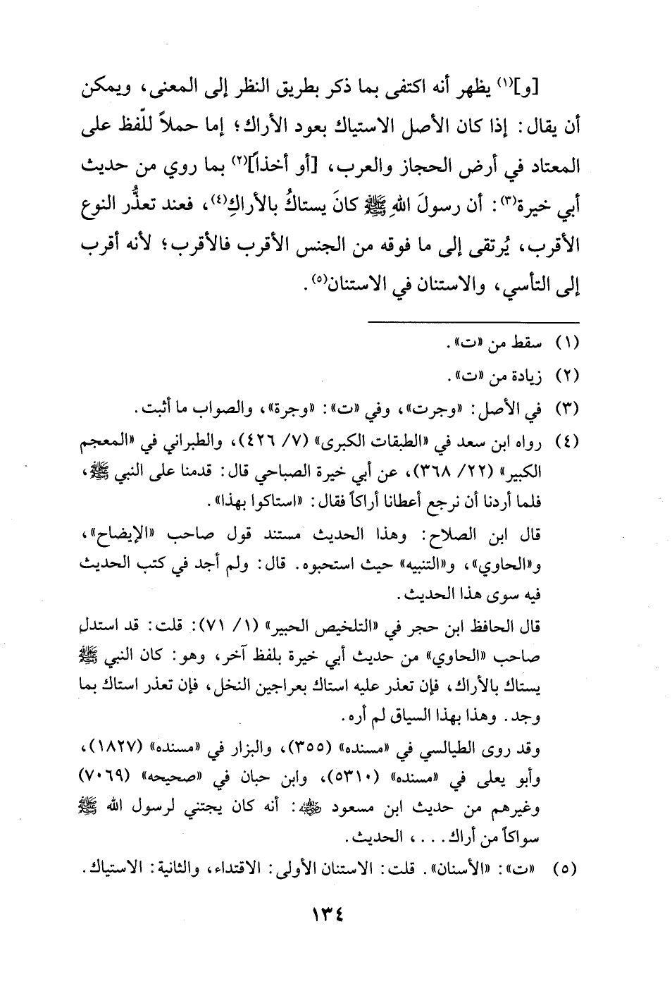 (¬4) رواه ابن سعد في "الطبقات الكبرى" (7/ 426)، والطبراني في "المعجم الكبير" (22/ 368)، عن أبي خيرة الصباحي قال: قدمنا على النَّبيُّ - صَلَّى الله عليه وسلم -، فلما أردنا أن نرجع أعطانا أراكاً فقال: "استاكوا بهذا".