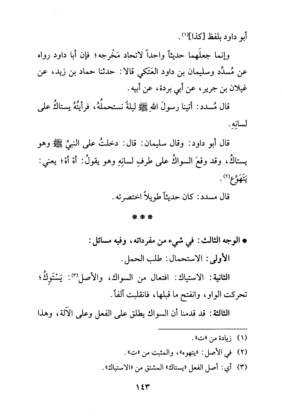 (¬3) أي: أصل الفعل "يستاك" المشتق من "الاستياك".
