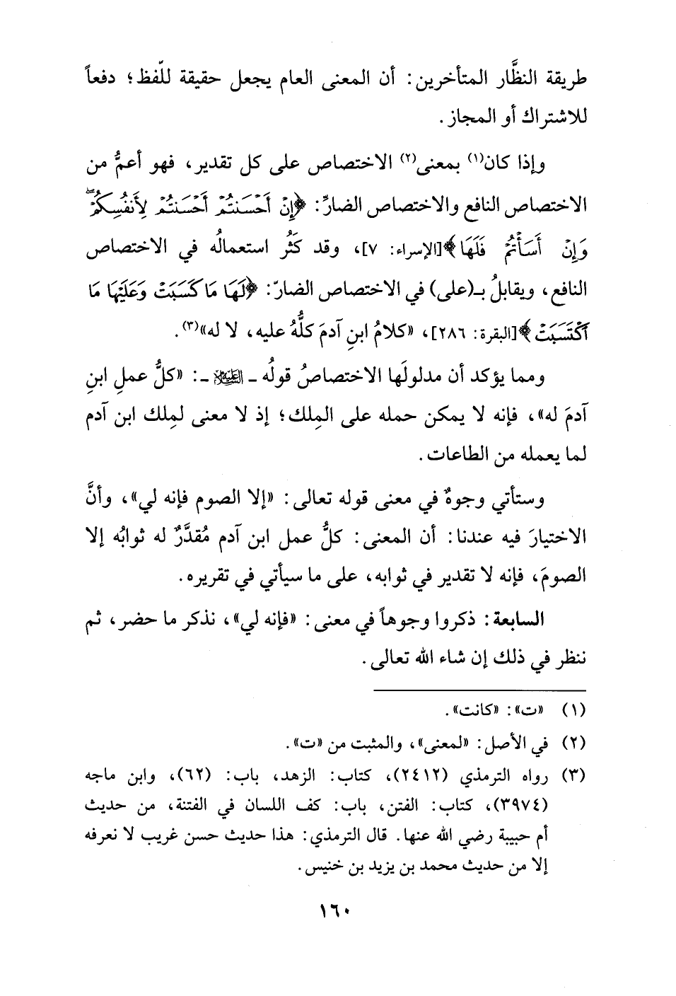 ومما يؤكد أن مدلولَها الاختصاصُ قولُه - عليه السلام -: "كلُّ عملِ ابنِ آدمَ له"، فإنه لا يمكن حمله على المِلك؛ إذ لا معنى لمِلك ابن آدم لما يعمله من الطاعات.