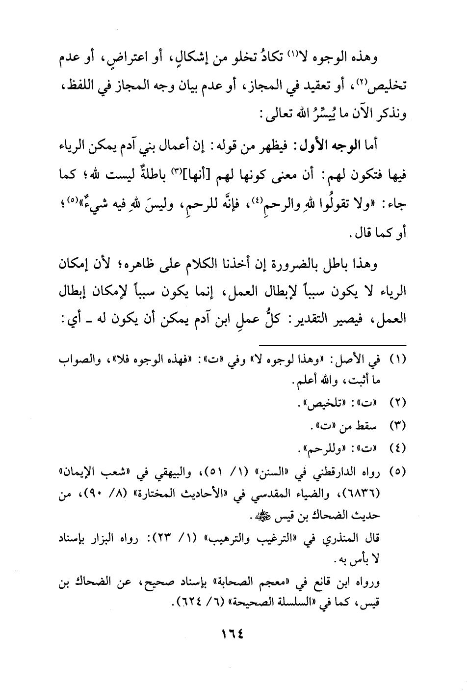 وهذا باطل بالضرورة إن أخذنا الكلام على ظاهره؛ لأن إمكان الرياء لا يكون سبباً لإبطال العمل، إنما يكون سبباً لإمكان إبطال العمل، فيصير التقدير: كلُّ عملِ ابن آدم يمكن أن يكون له - أي: