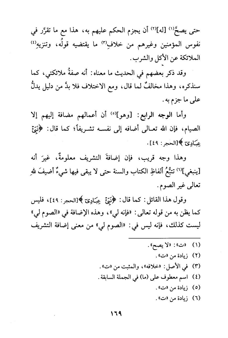 وقول هذا القائل: كما قال: {نَبِّئْ عِبَادِىَ} [الحجر: 49]، فليس كما يظن به من قوله تعالى: "فإنه لي"، وهذه الإضافة في "الصوم لي" ليست كذلك، فإنه ليس في: "الصوم لي" من معنى إضافة التشريف