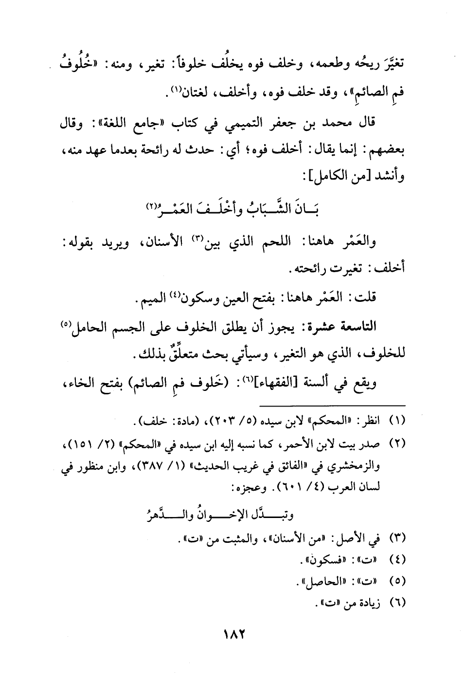 قال محمد بن جعفر التميمي في كتاب "جامع اللغة": وقال بعضهم: إنما يقال: أخلف فوه؛ أي: حدث له رائحة بعدما عهد منه، وأنشد [من الكامل]: