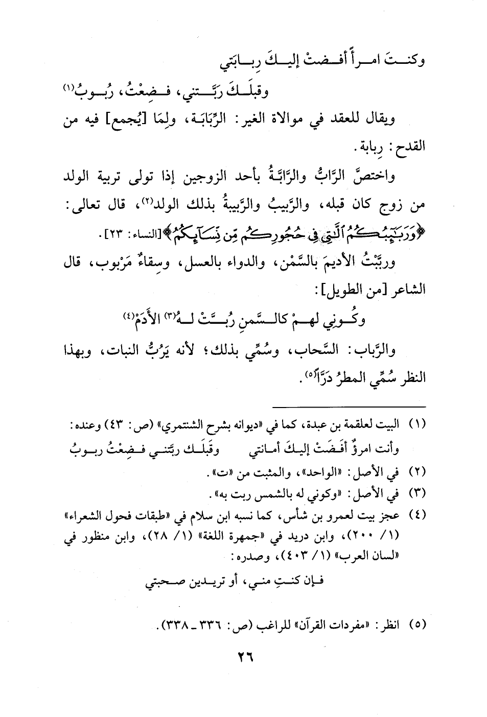وكنتَ امرأً أفضتْ إليكَ رِبابَتي ... وقبلَكَ رَبَّتني، فضِعْتُ، رُبوبُ (¬1)