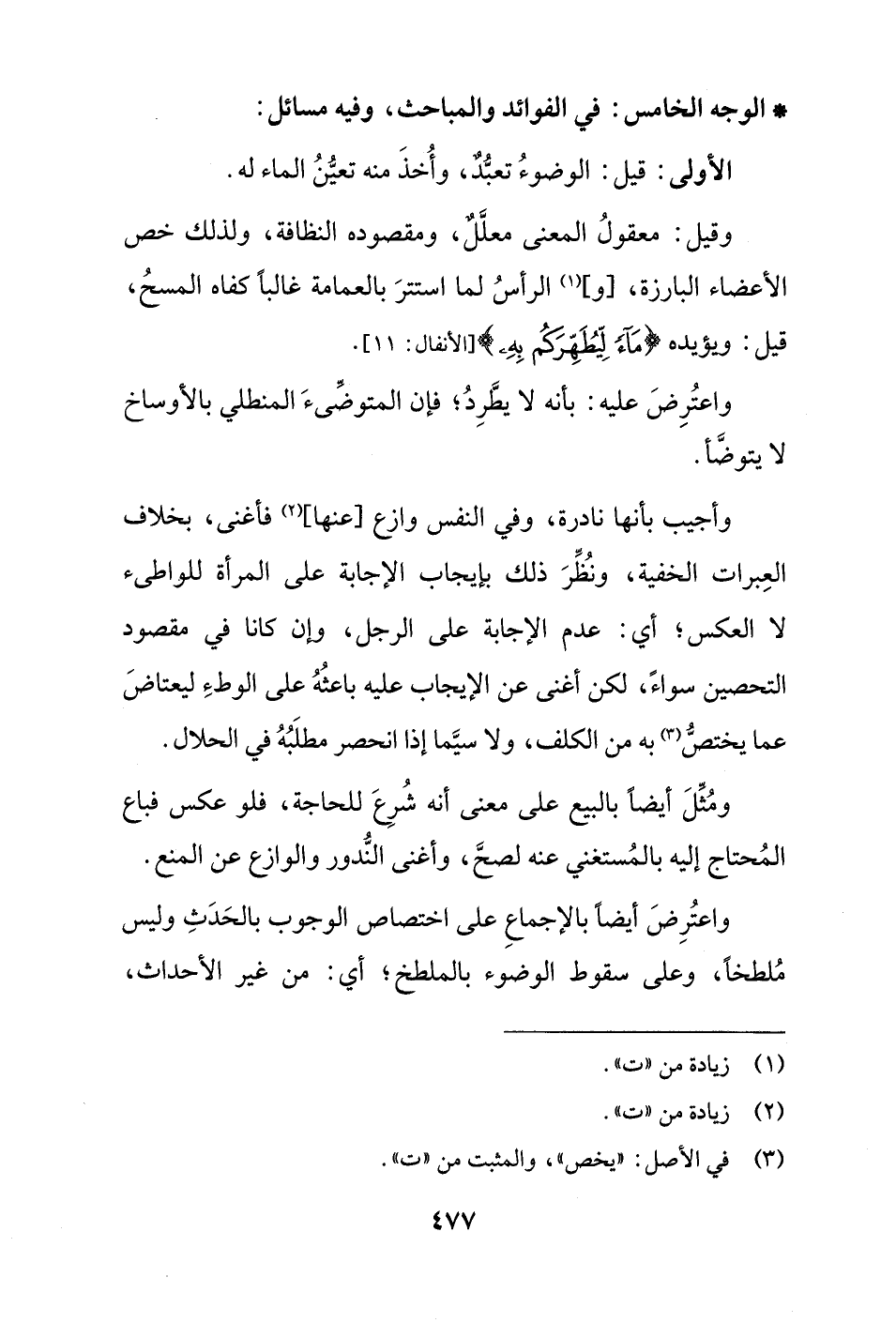 * الوجه الخامس: في الفوائد والمباحث، وفيه مسائل: