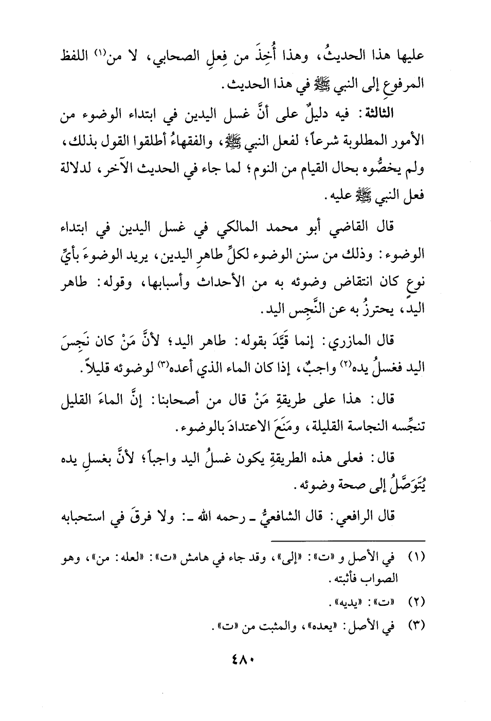 قال المازري: إنما قَيَّدَ بقوله: طاهر اليد؛ لأنَّ مَنْ كان نَجِسَ اليد فغسلُ يده (¬2) واجبٌ، إذا كان الماء الذي أعده (¬3) لوضوئه قليلًا.