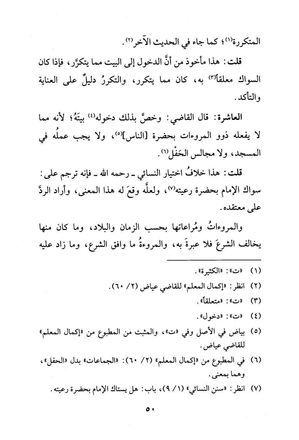 (¬7) انظر: "سنن النسائي" (1/ 9)، باب: هل يستاك الإمام بحضرة رعيته.