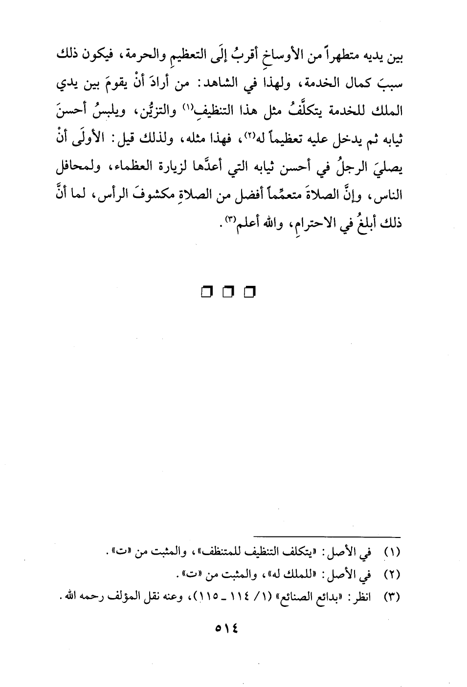 (¬3) انظر: "بدائع الصنائع" (1/ 114 - 115)، وعنه نقل المؤلف رحمه الله.