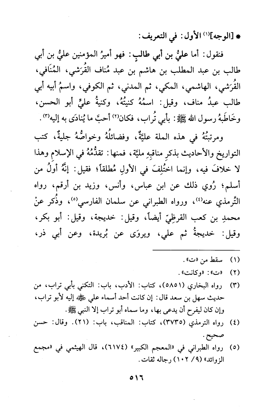 (¬3) رواه البخاري (5851)، كتاب: الأدب، باب: التكني بأبي تراب، من حديث سهل بن سعد قال: إن كانت أحد أسماء علي - رضي الله عنه - إليه لأبو تراب، وإن كان ليفرح أن يدعى بها، وما سماه أبو تراب إلا النبي - صلى الله عليه وسلم -.