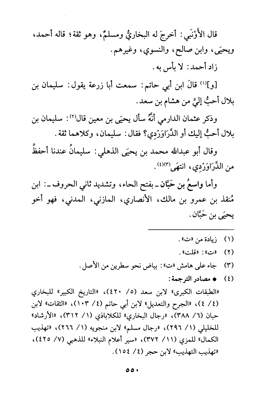 [و] (¬1) قالَ ابن أبي حاتم: سمعت أبا زرعة يقول: سليمان بن بلال أحبُّ إليَّ من هشام بن سعد.