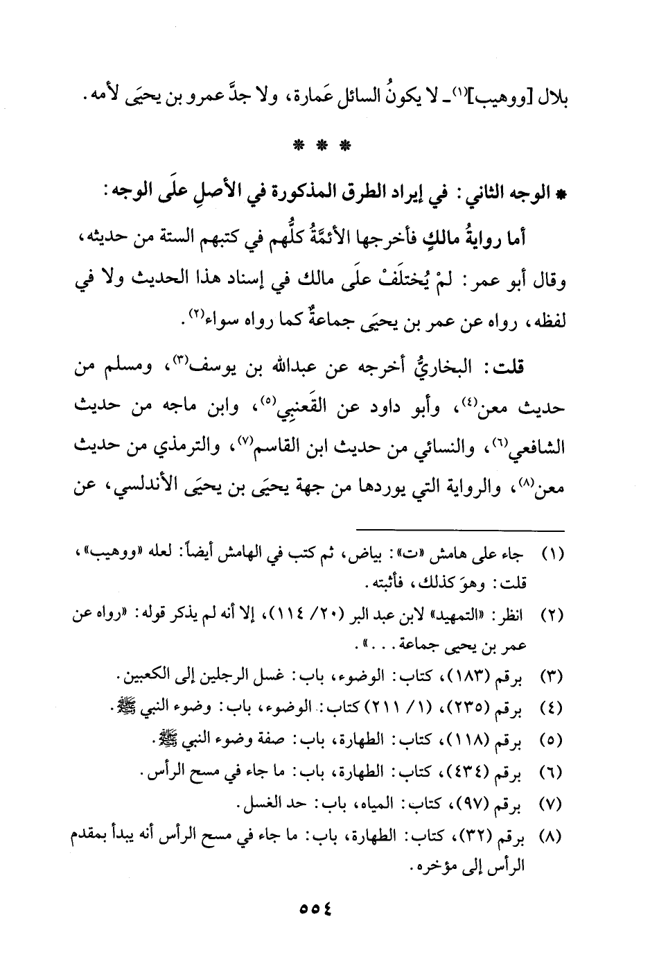 (¬2) انظر: "التمهيد" لابن عبد البر (20/ 114)، إلا أنه لم يذكر قوله: "رواه عن عمر بن يحيى جماعة ... ".