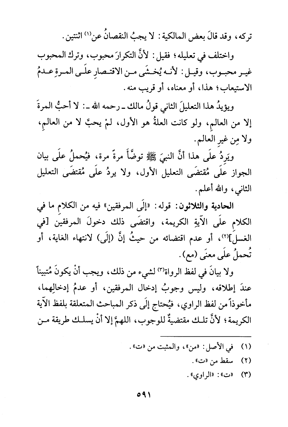 ولا بيانَ في لفظ الرواة (¬3) لشيء من ذلك، ويجب أنْ يكونَ مُتبيناً عندَ إطلاقه، وليس وجوبُ إدخال المرفقين، أو عدمُ إدخالِهما، مأخوذاً من لفظ الراوي، فيُحتاج إلَى ذكر المباحث المتعلقة بلفظ الآية الكريمة؛ لأنَّ تلك مقتضيةٌ للوجوب، اللهمَّ إلا أنْ يسلك طريقة من
