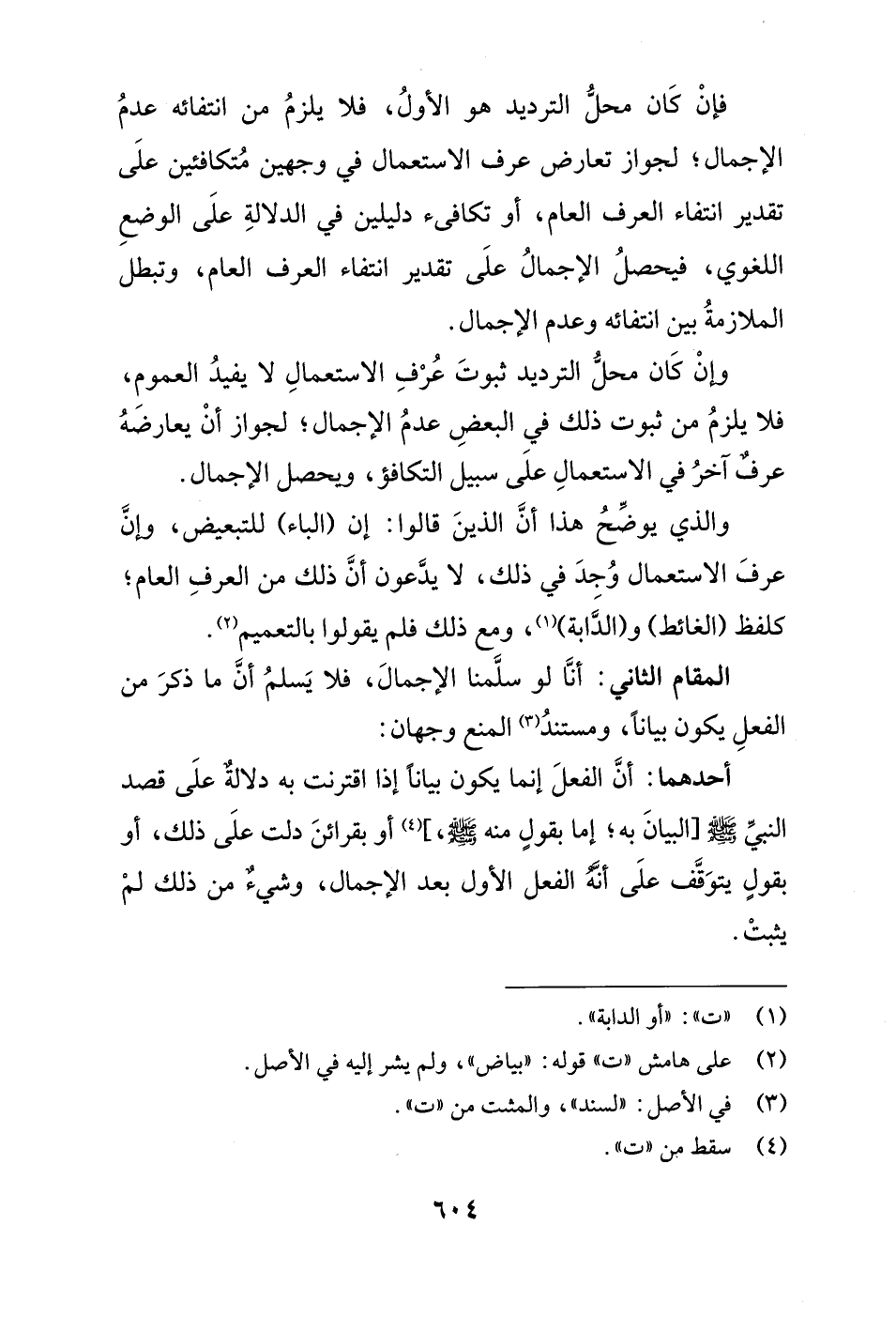 المقام الثاني: أنَّا لو سلَّمنا الإجمالَ، فلا يَسلمُ أنَّ ما ذكرَ من الفعلِ يكون بياناً، ومستندُ (¬3) المنع وجهان:
