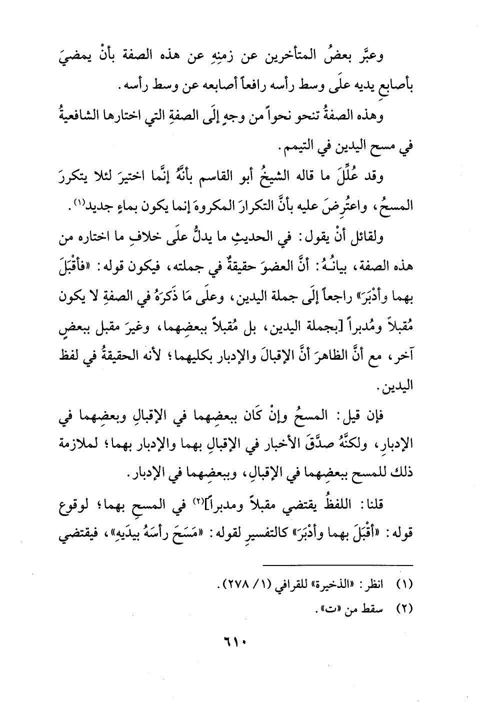 وهذه الصفةُ تنحو نحوًا من وجهٍ إلَى الصفةِ التي اختارها الشافعيةُ في مسح اليدين في التيمم.